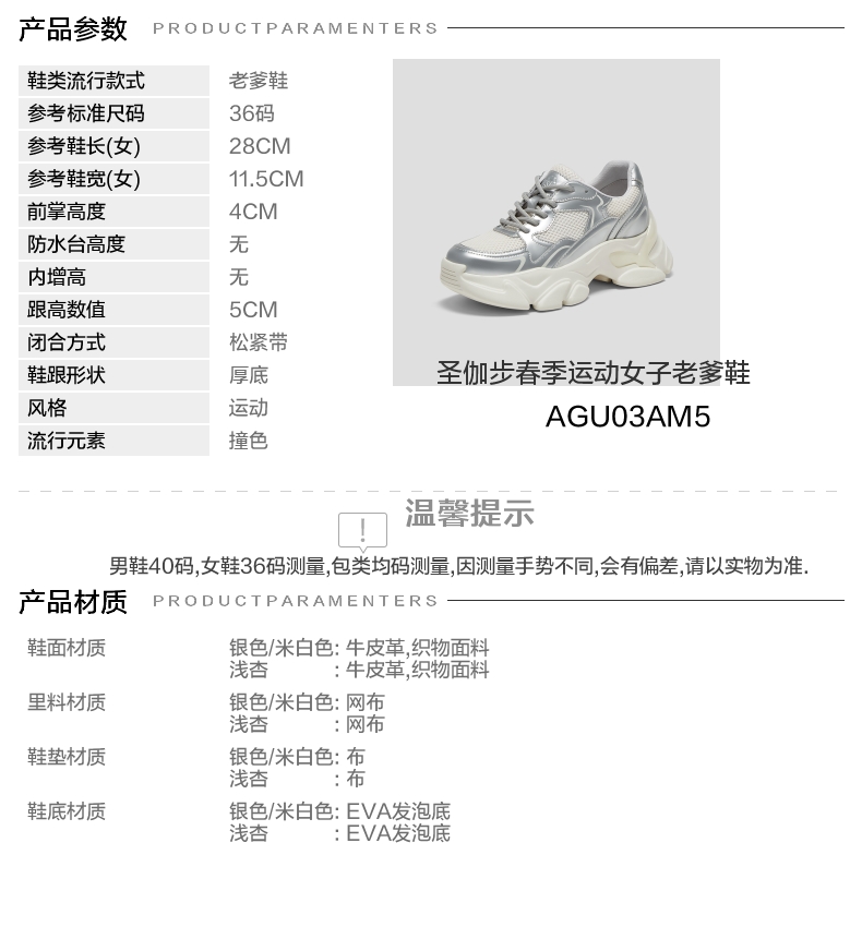| 参考鞋长(女):28CM | 参考鞋宽(女):11.5CM | 风格:运动 | 年份:2025年 | 色系:银色 |