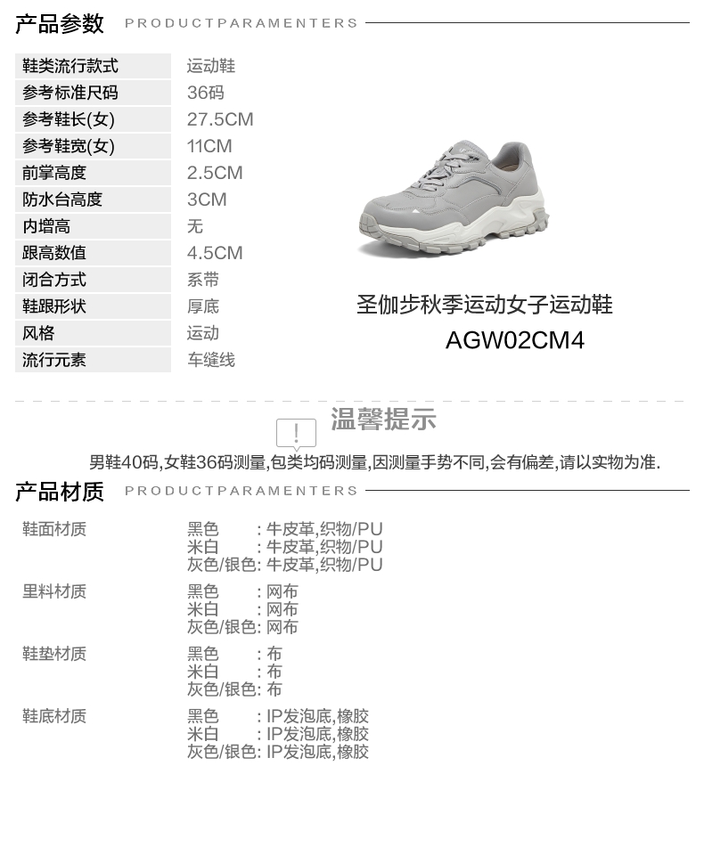 | 鞋跟形状:厚底 | 参考鞋长(女):27.5CM | 流行元素:车缝线 | 参考鞋宽(女):11CM | 风格:运动 |
