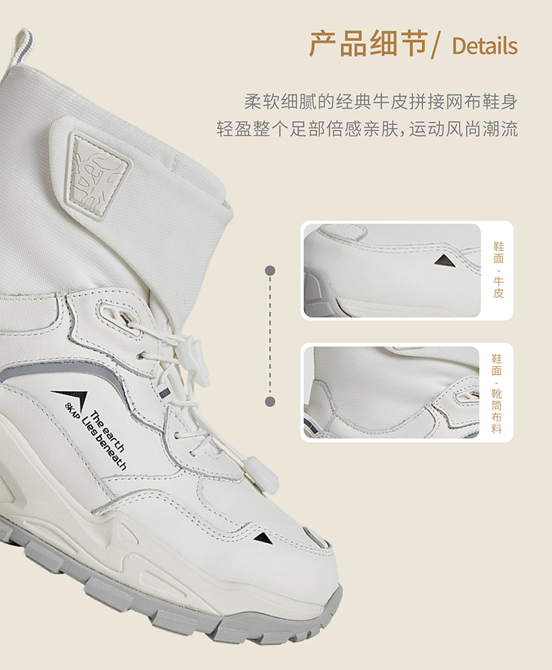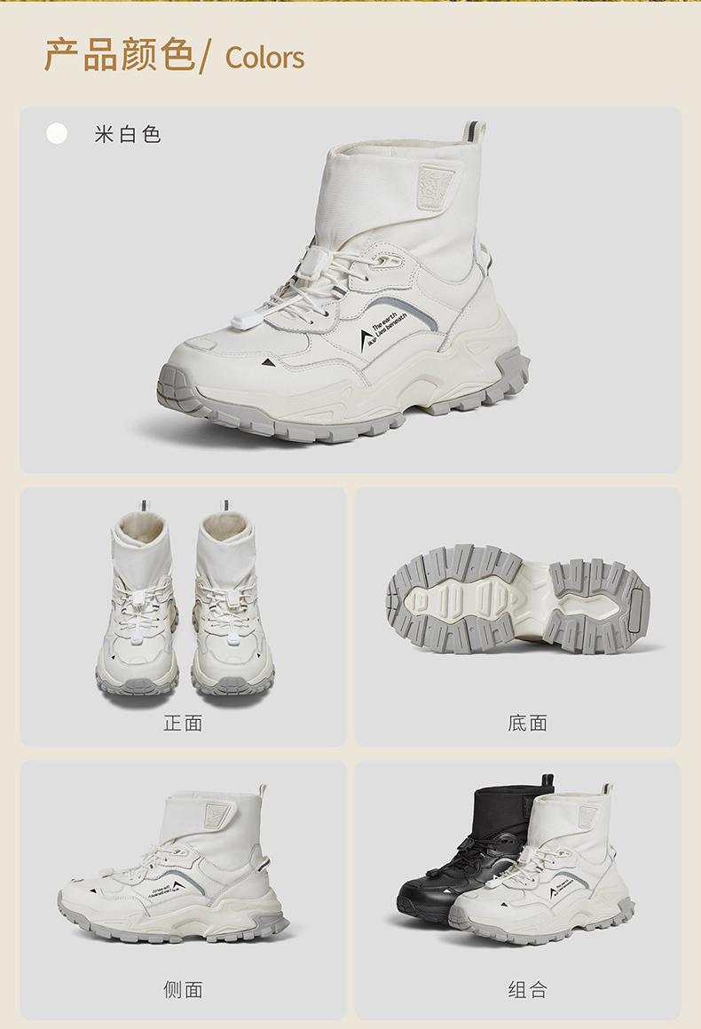 | 鞋底材质:橡胶底IP发泡底 | 靴筒内里材质:人造短毛绒 | 内增高:无 | 鞋面材质:牛皮革织物面料 | 闭合方式:系带 |