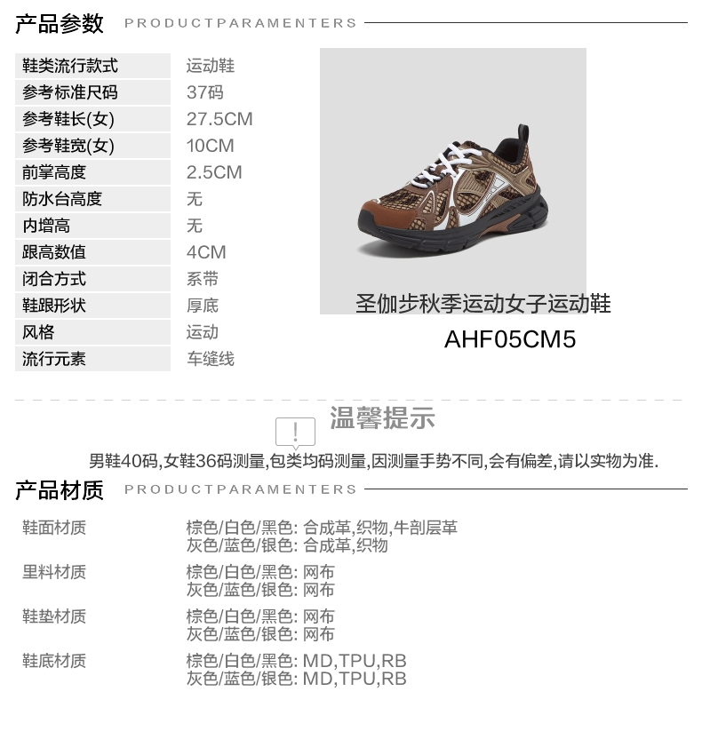 | 鞋垫材质:网布 | 款式季节:秋季 | 前掌高度:2.5CM | 皮质特征:合成革 | 防水台高度:无 |