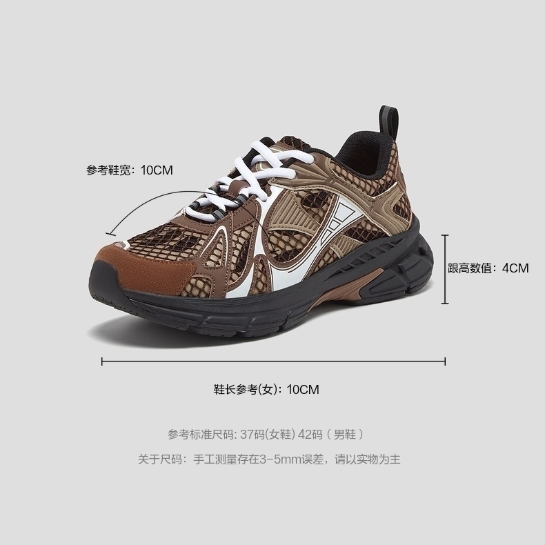 | 色系:棕色 | 跟高数值:4CM | 性别:女子 | 里料材质:网布 | 制鞋工艺:胶贴皮鞋 |