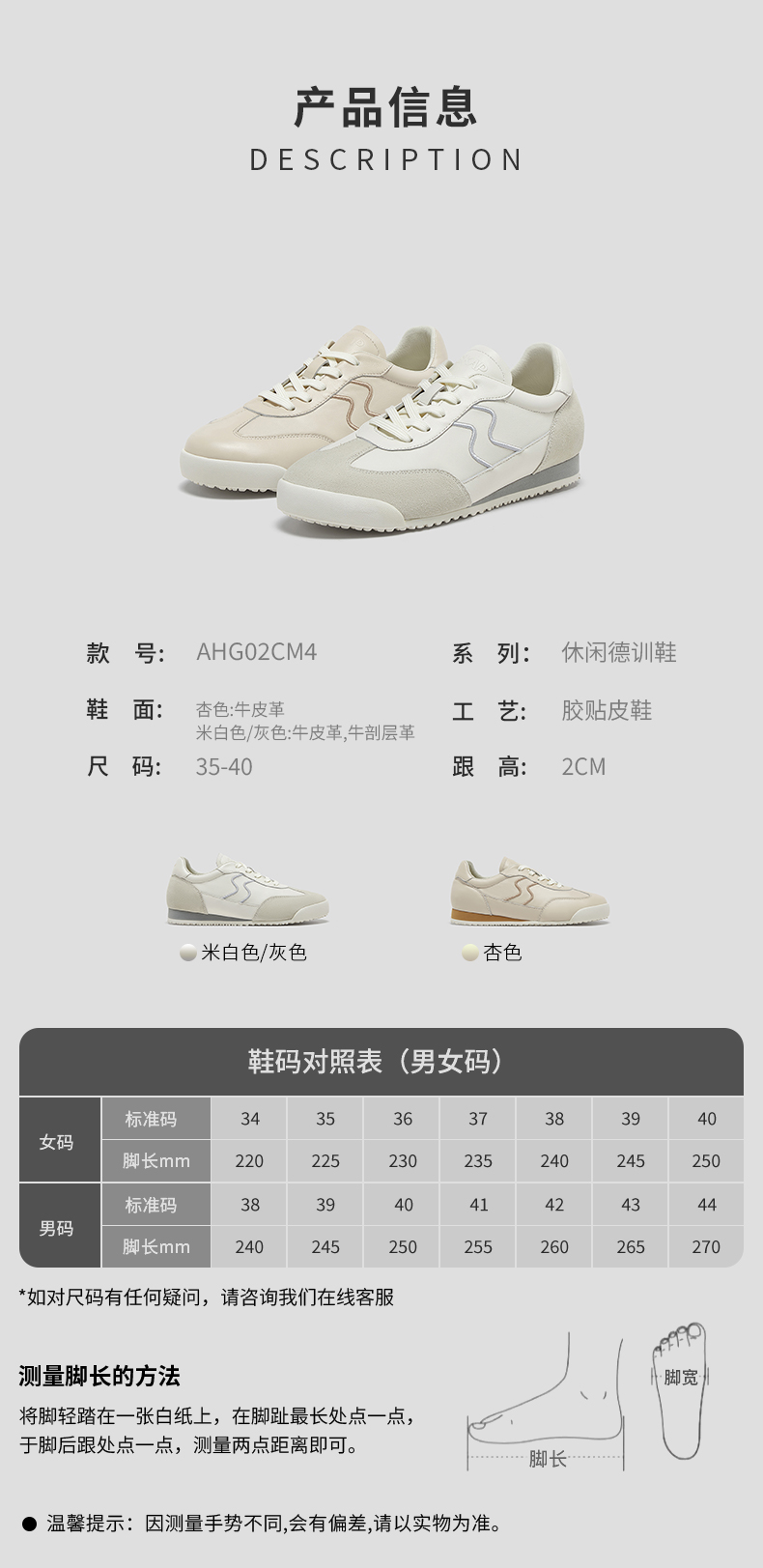 | 鞋帮:低帮 | 鞋底材质:EVA橡胶底 | 内增高:无 | 鞋面材质:牛皮革 | 闭合方式:系带 |