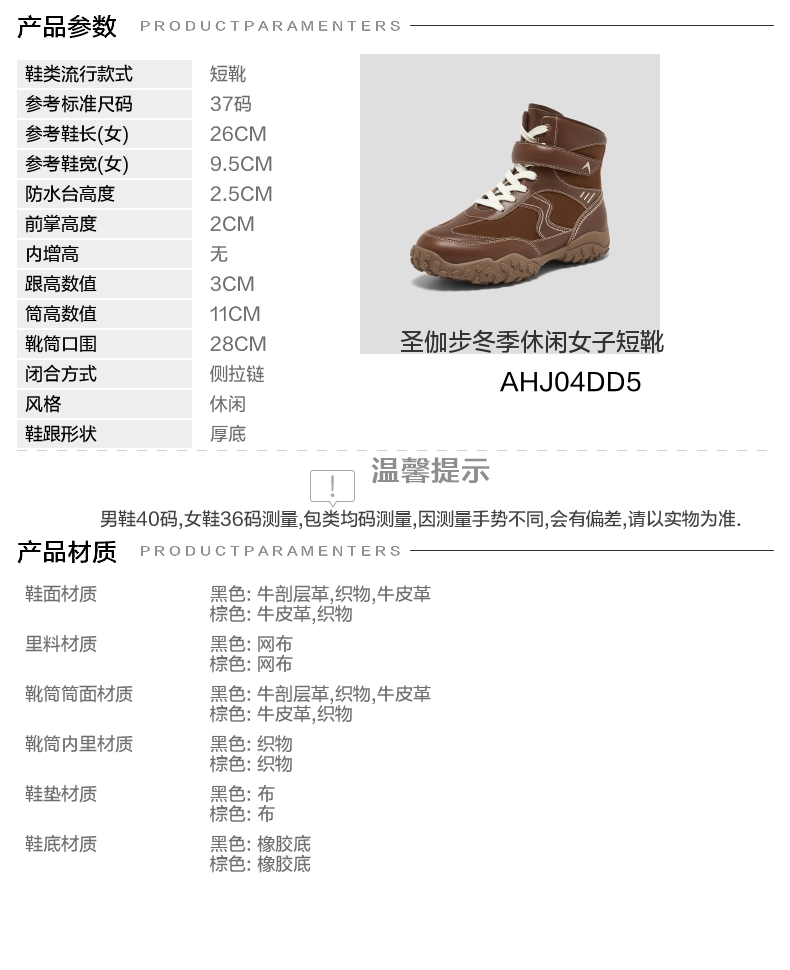 | 帮面材质:织物牛皮革 | 配跟:无 | 靴筒口围:28CM | 上市时间:2025年冬季 | 鞋类流行款式:短靴 |