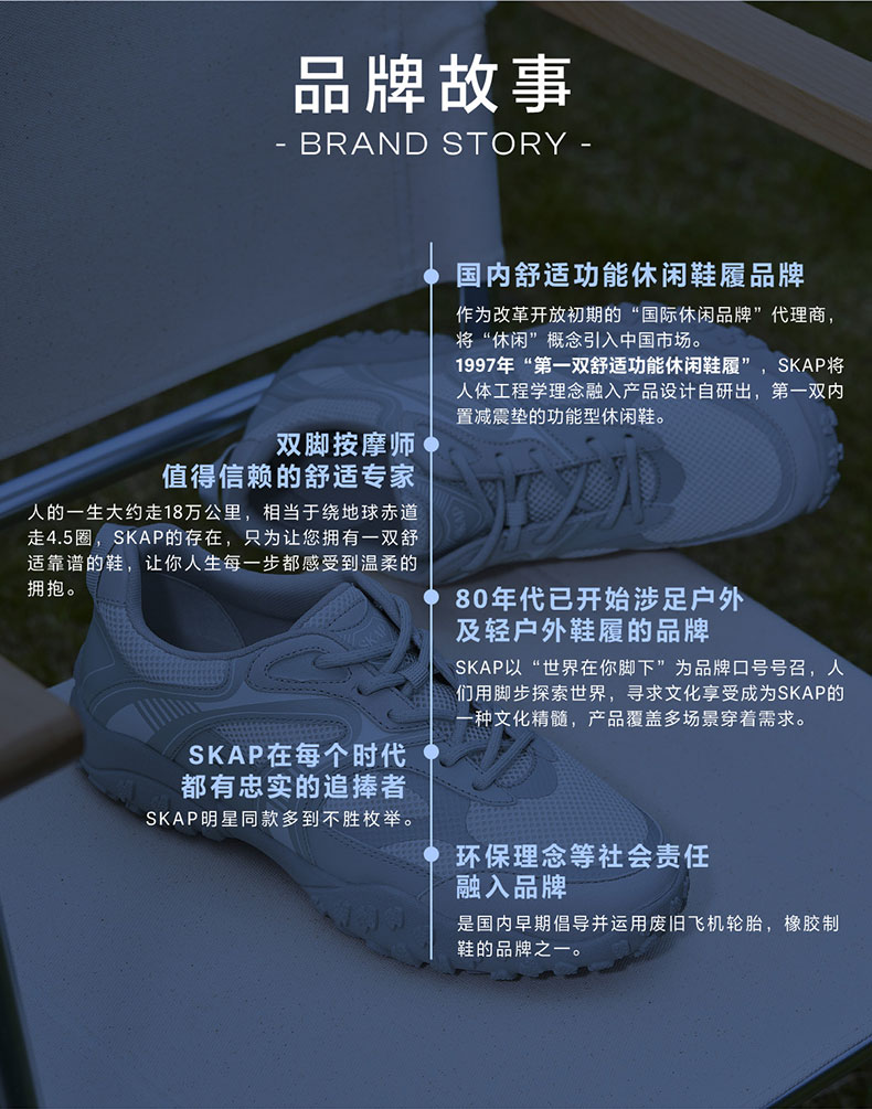 SKAP代表了现代人文理念的升华,提倡回归自然的同时,也和现代城市白领的生活模式紧紧相扣,他崇尚自然、远离喧嚣,用个性的情怀品味自然之美;他追求美好,秉承对质量、科技的坚持,开启舒适、健康生活之旅,打造明日生活态度。