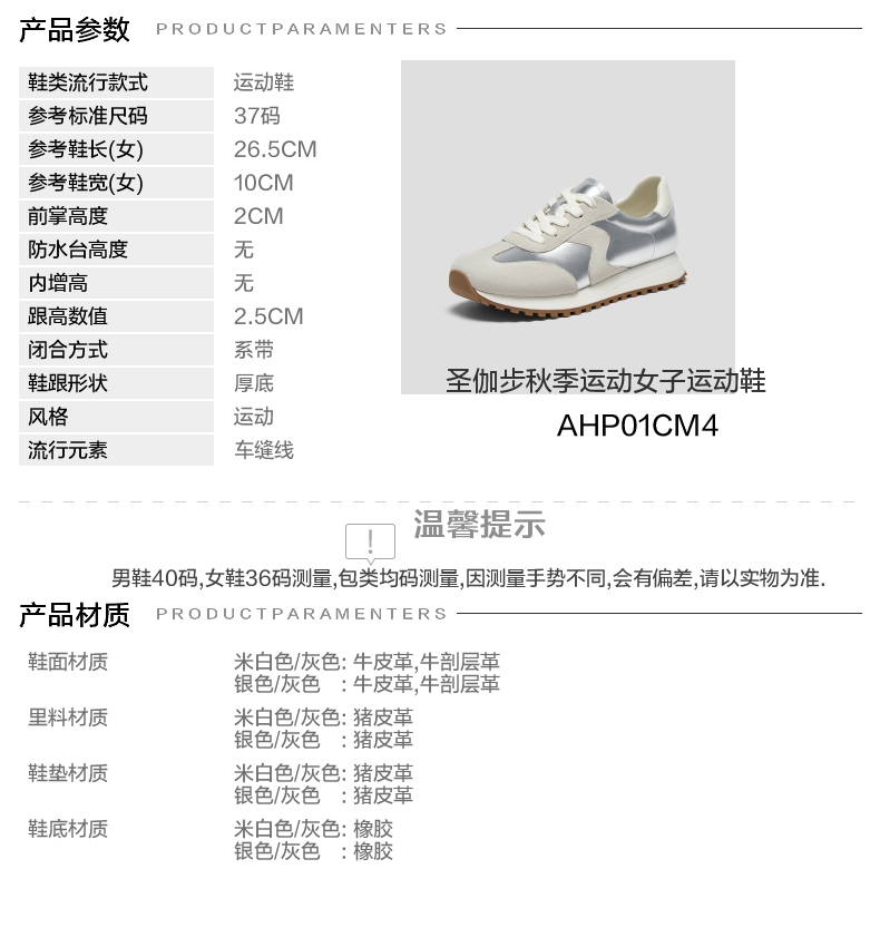 | 鞋跟形状:厚底 | 参考鞋长(女):26.5CM | 流行元素:车缝线 | 参考鞋宽(女):10CM | 风格:运动 |