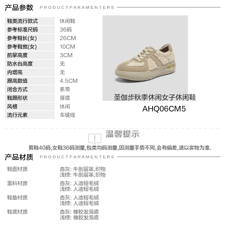 | 里料材质:人造短毛绒 | 制鞋工艺:胶贴皮鞋 | 鞋垫材质:人造短毛绒 | 款式季节:秋季 | 前掌高度:3CM |