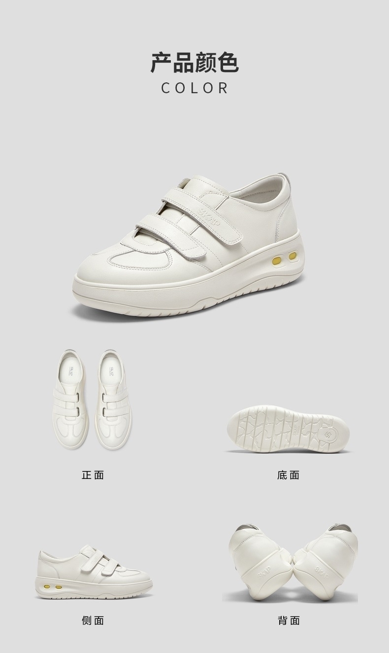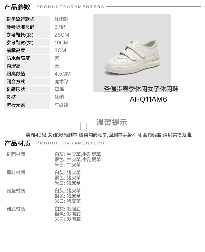 | 鞋帮:低帮 | 鞋底材质:发泡底 | 内增高:无 | 鞋面材质:牛皮革 | 闭合方式:魔术贴 |