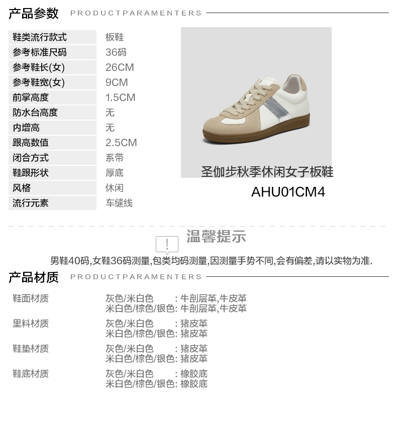 | 鞋帮:低帮 | 鞋底材质:橡胶底 | 内增高:无 | 鞋面材质:牛皮革牛剖层革 | 闭合方式:系带 |