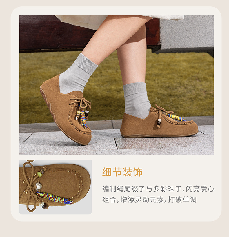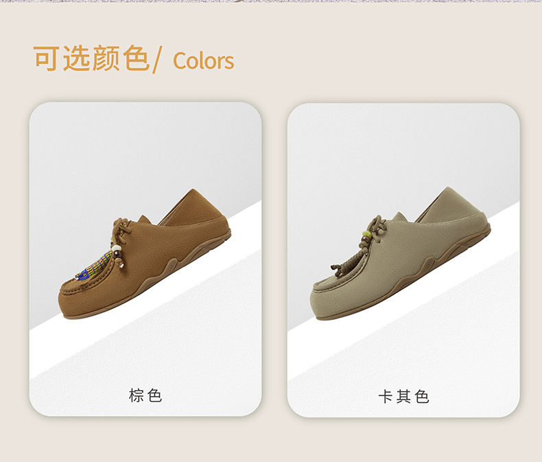 | 色系:卡其 | 跟高数值:1.5CM | 性别:女子 | 里料材质:猪皮革 | 制鞋工艺:胶贴皮鞋 |