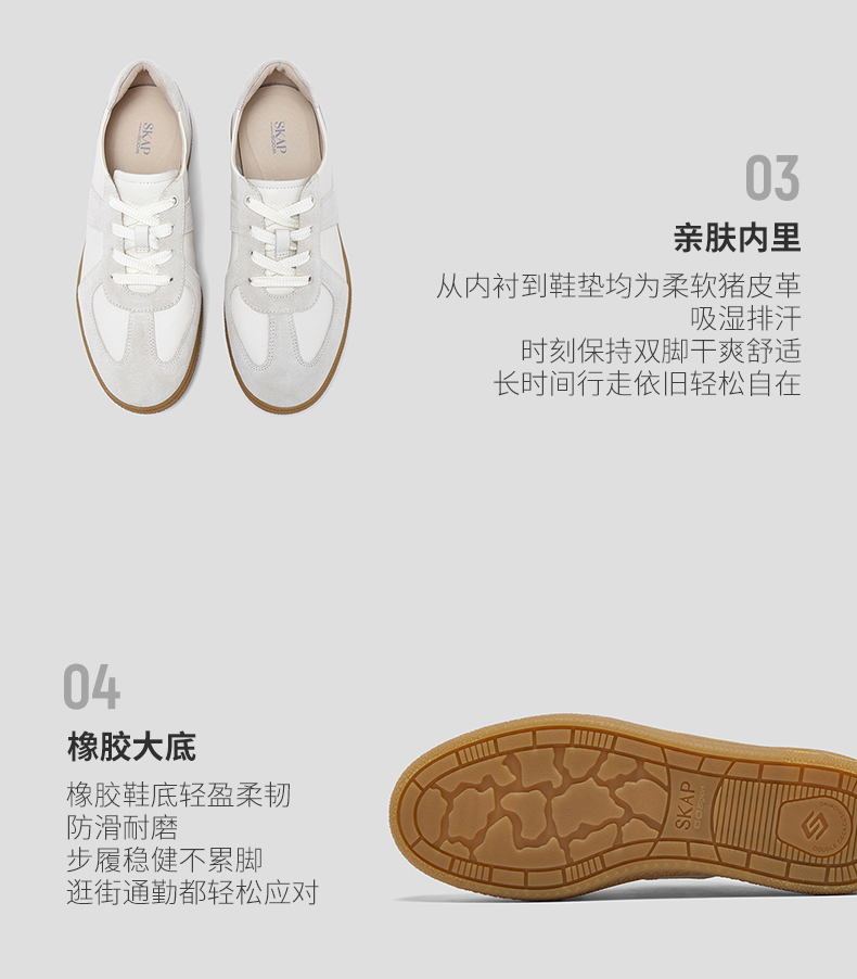 | 鞋帮:低帮 | 鞋底材质:橡胶 | 内增高:无 | 鞋面材质:牛剖层革牛皮革 | 闭合方式:系带 |