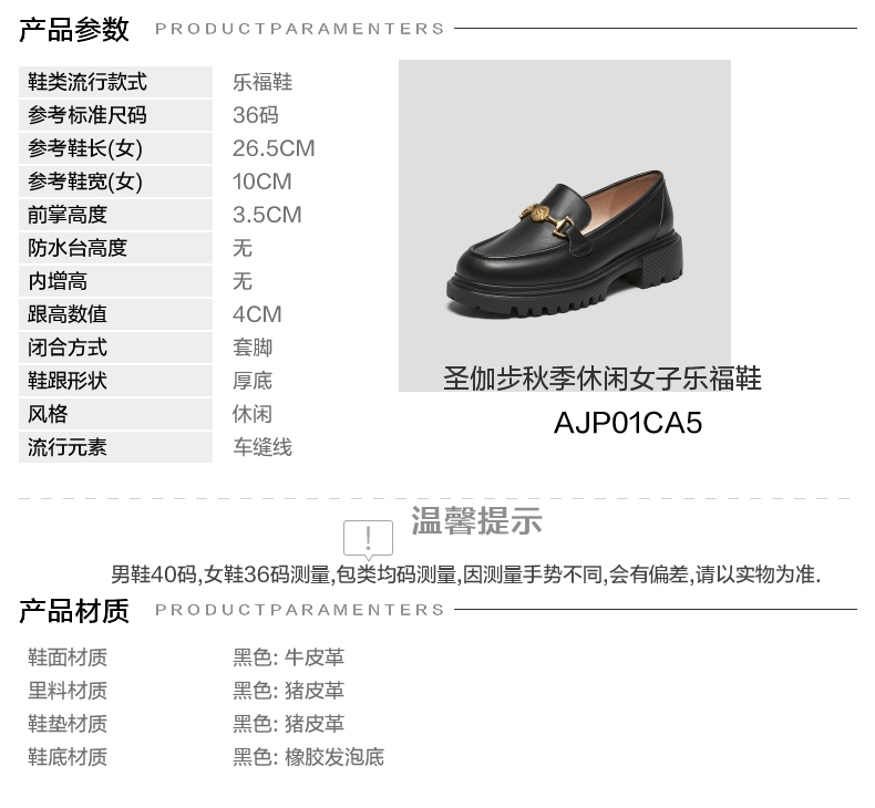 | 配跟:无 | 上市时间:2025年秋季 | 鞋类流行款式:乐福鞋 | 鞋头款式:圆头 | 鞋面图案:纯色 |