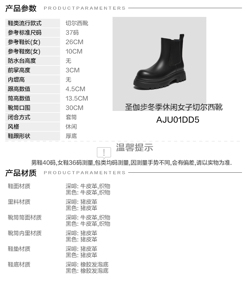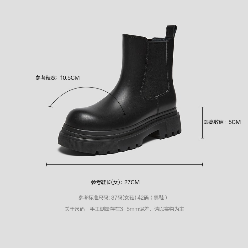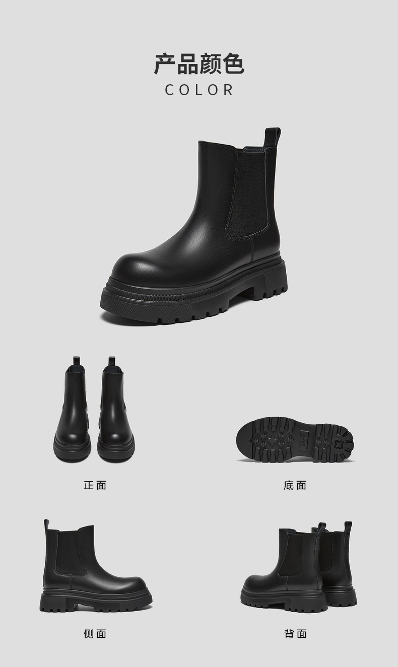 | 帮面材质:织物牛皮革 | 配跟:无 | 靴筒口围:30CM | 上市时间:2025年冬季 | 鞋类流行款式:切尔西靴 |