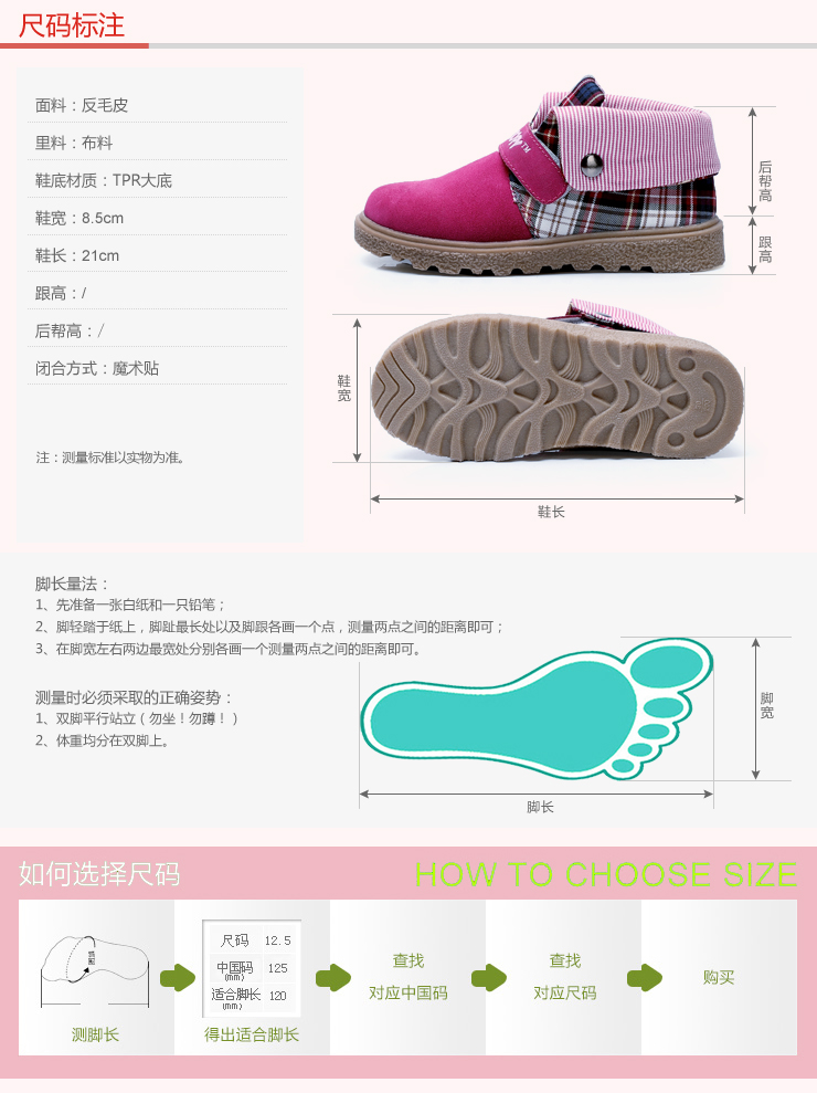 | 鞋底材质:TPR大底 | 面料图案:格子 | 鞋跟形状:平跟 | 鞋面材质:反毛皮革 | 年龄段:小童3~6岁中童6~12岁 |