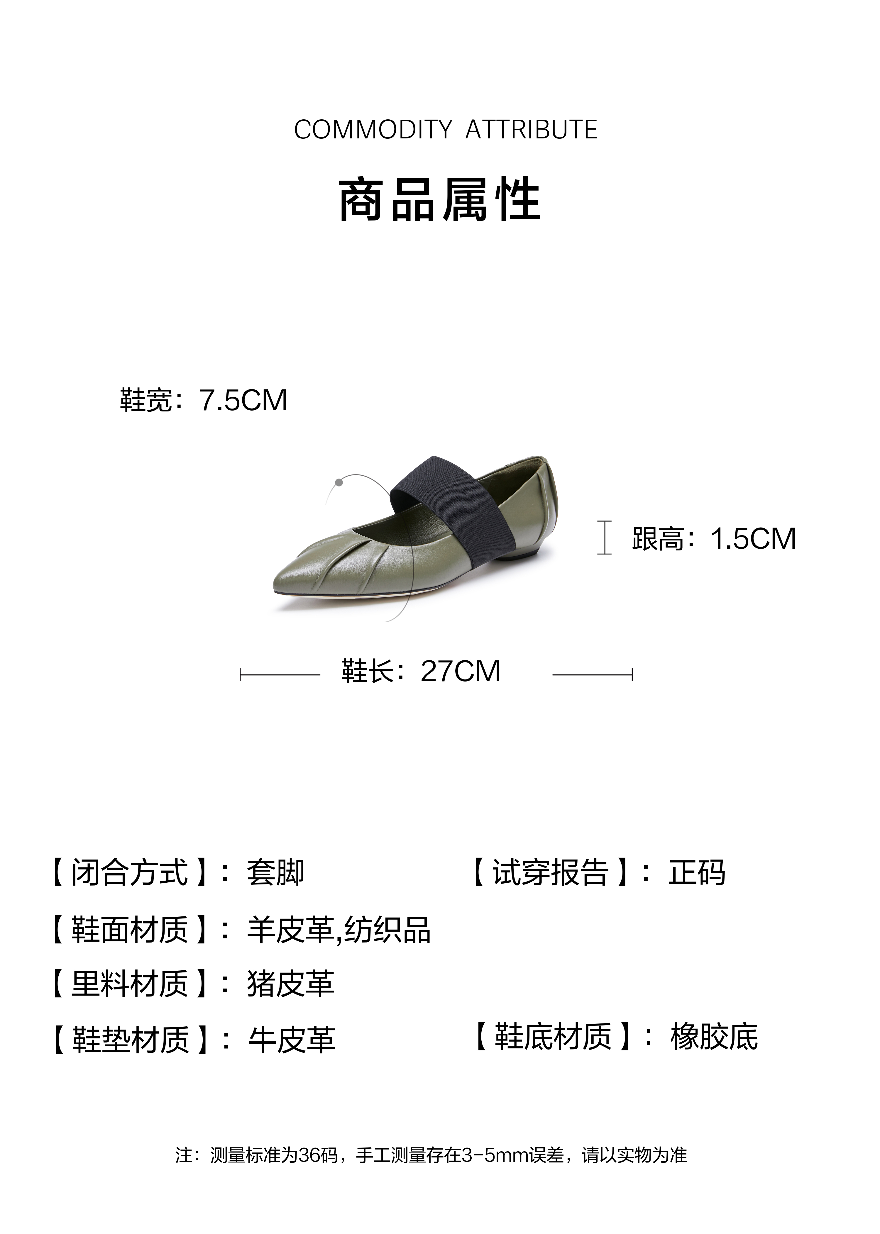 | 跟高范围:低跟鞋(小于3CM)低跟鞋(小于3CM) | 鞋面图案:纯色纯色 | 鞋跟形状:其他其他 | 厂家地址:广东省深圳市广东省深圳市 | 流行元素:纯色纯色 |