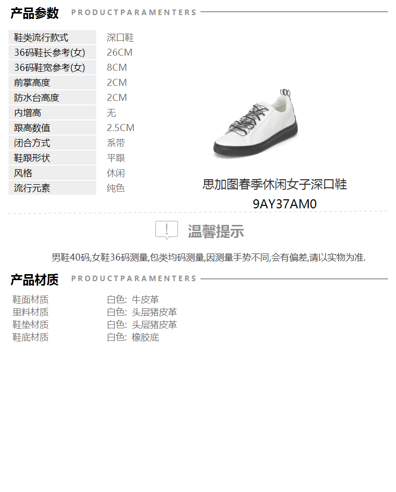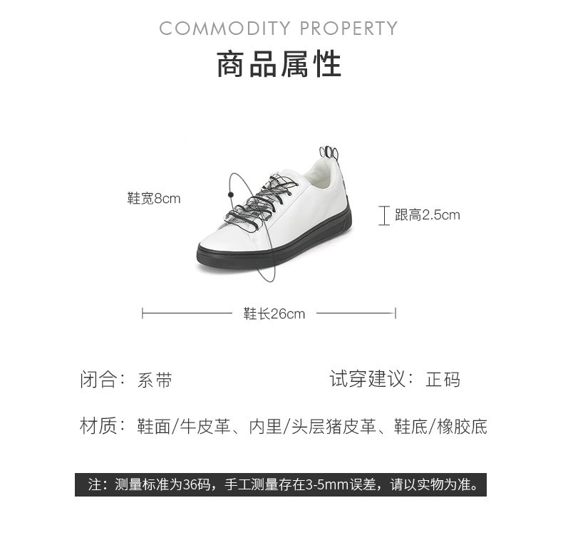 | 风格:休闲 | 跟高数值:2.5CM | 色系:白色 | 配跟:无 | 里料材质:头层猪皮革 |