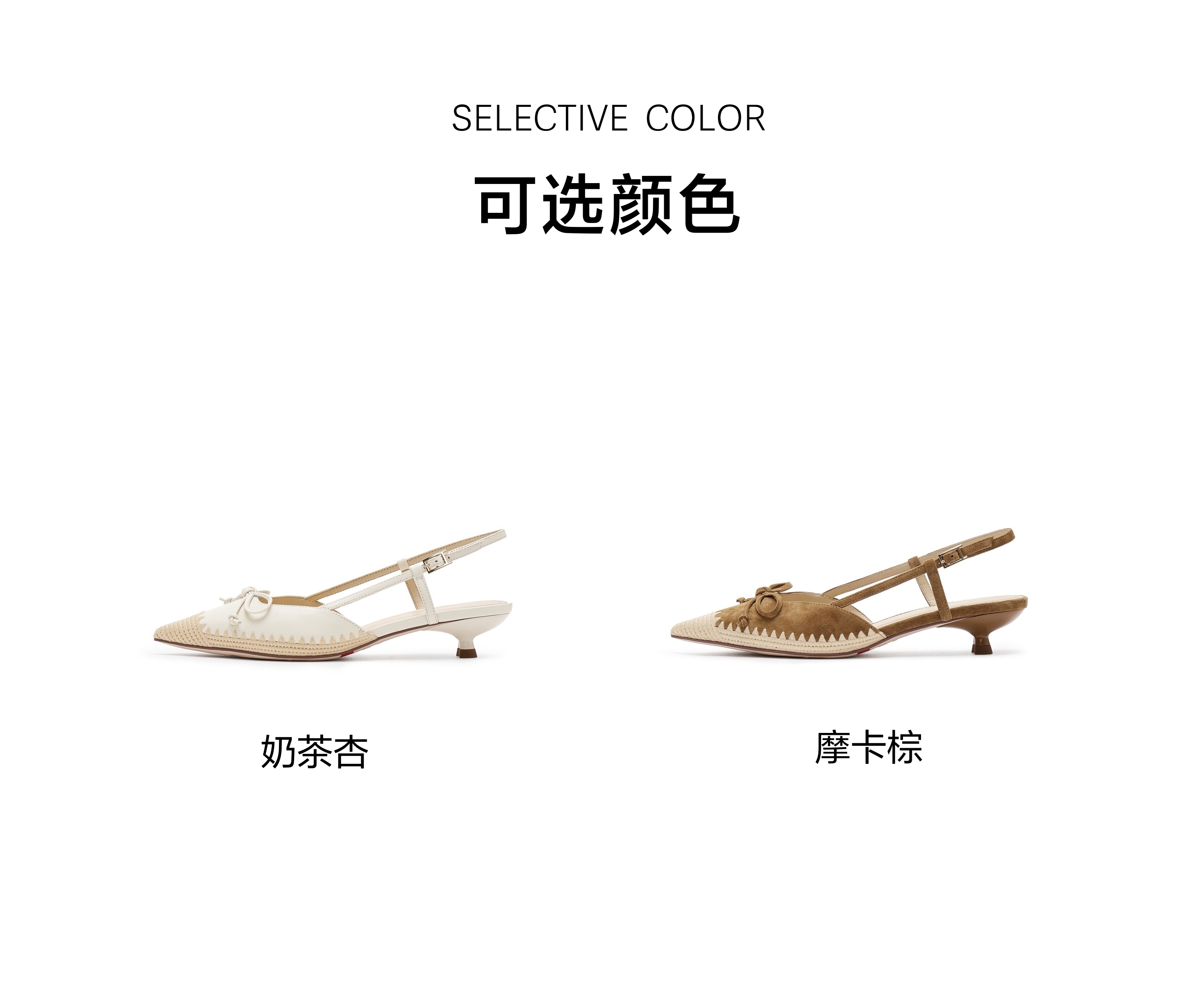 | 鞋头款式:尖头 | 执行标准:皮凉鞋GB/T22756-2017 | 跟高范围:中跟鞋(3-5CM) | 鞋面图案:拼色 | 鞋跟形状:细跟 |