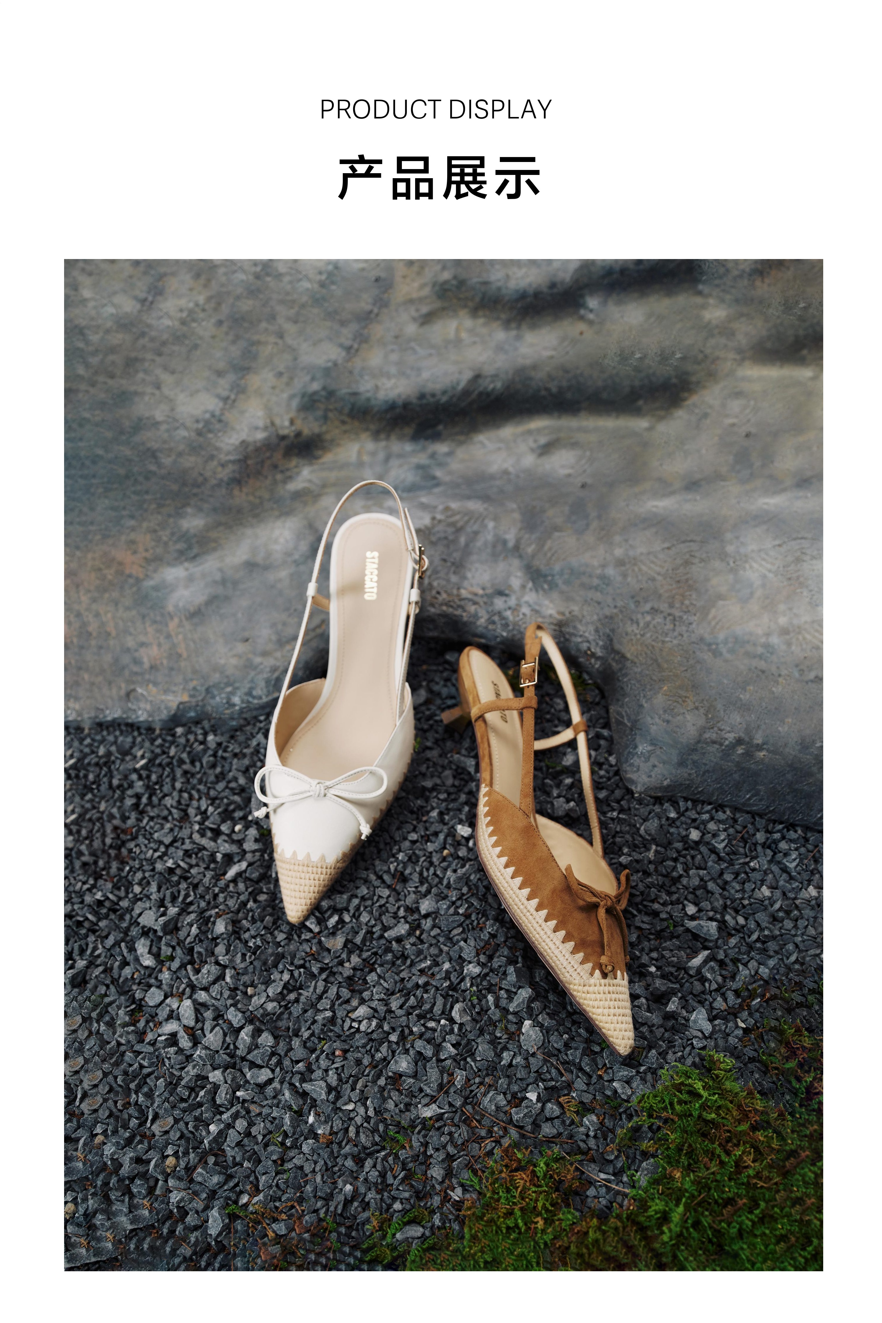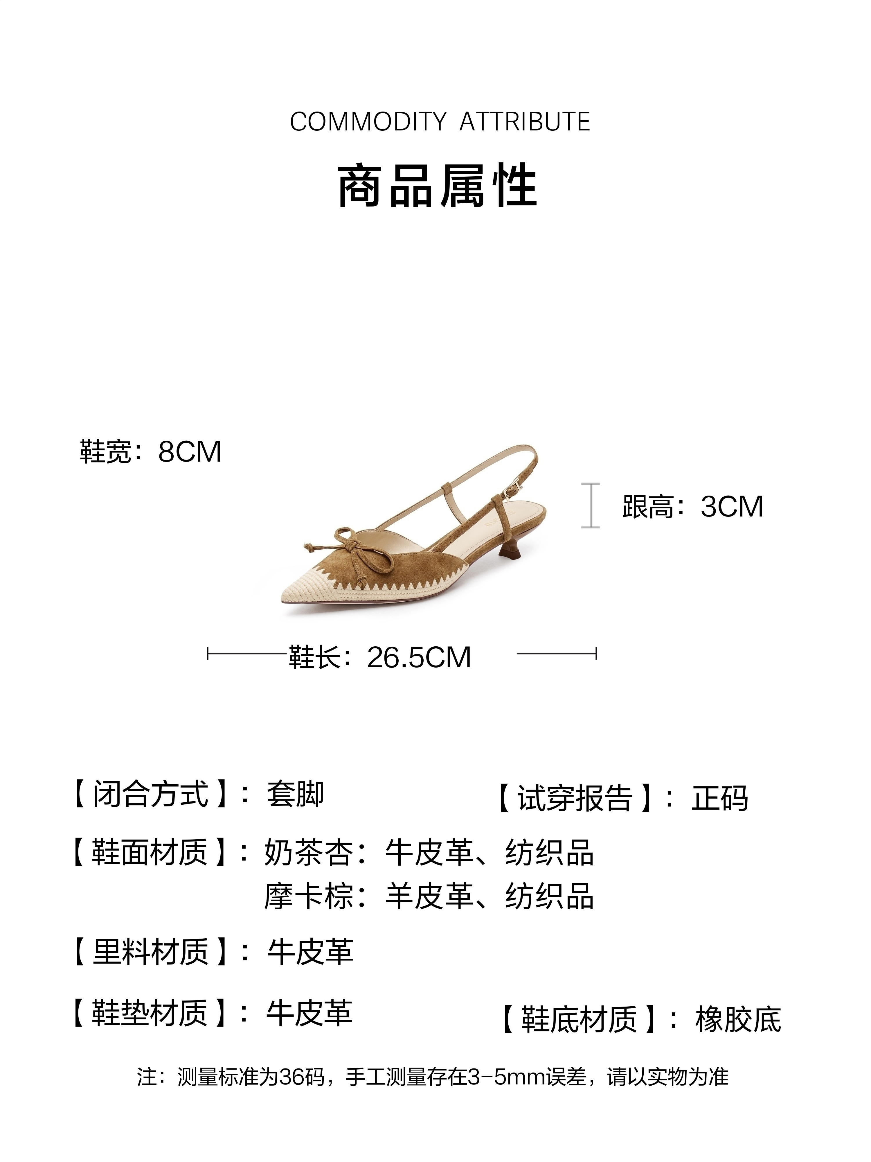 | 鞋头款式:尖头 | 执行标准:皮凉鞋GB/T22756-2017 | 跟高范围:中跟鞋(3-5CM) | 鞋面图案:拼色 | 鞋跟形状:细跟 |