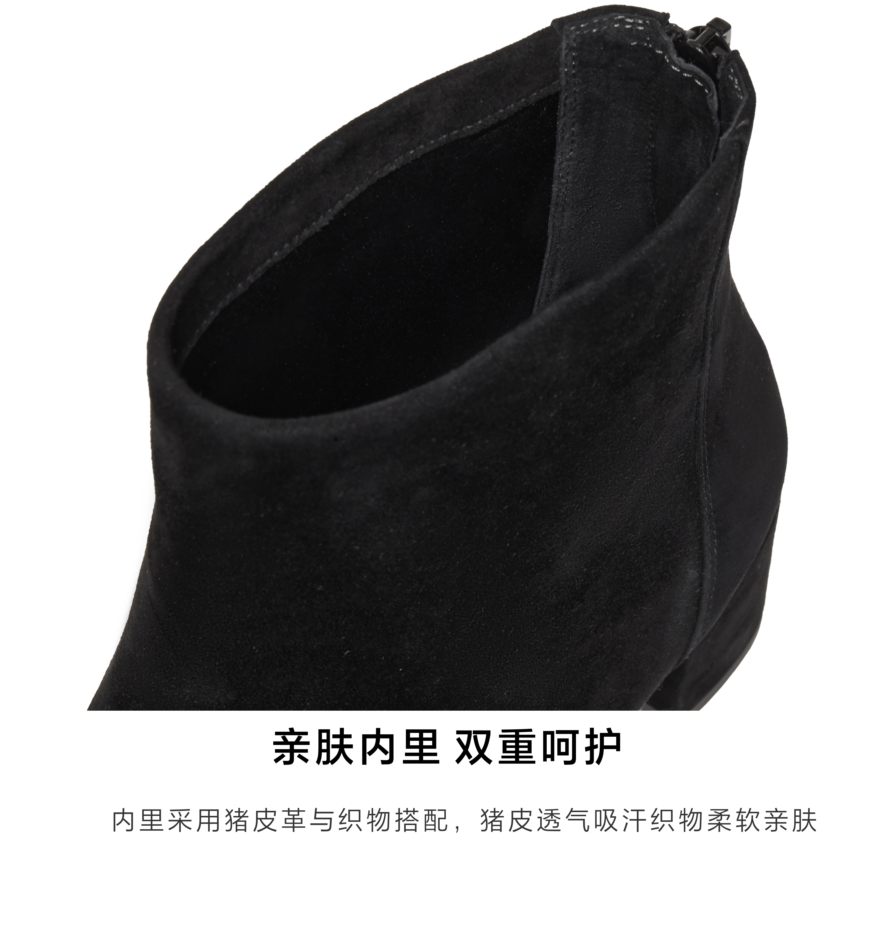 | 鞋底材质:橡胶底 | 靴筒内里材质:猪皮革织物 | 内增高:无 | 鞋面材质:羊皮革 | 闭合方式:后拉链 |