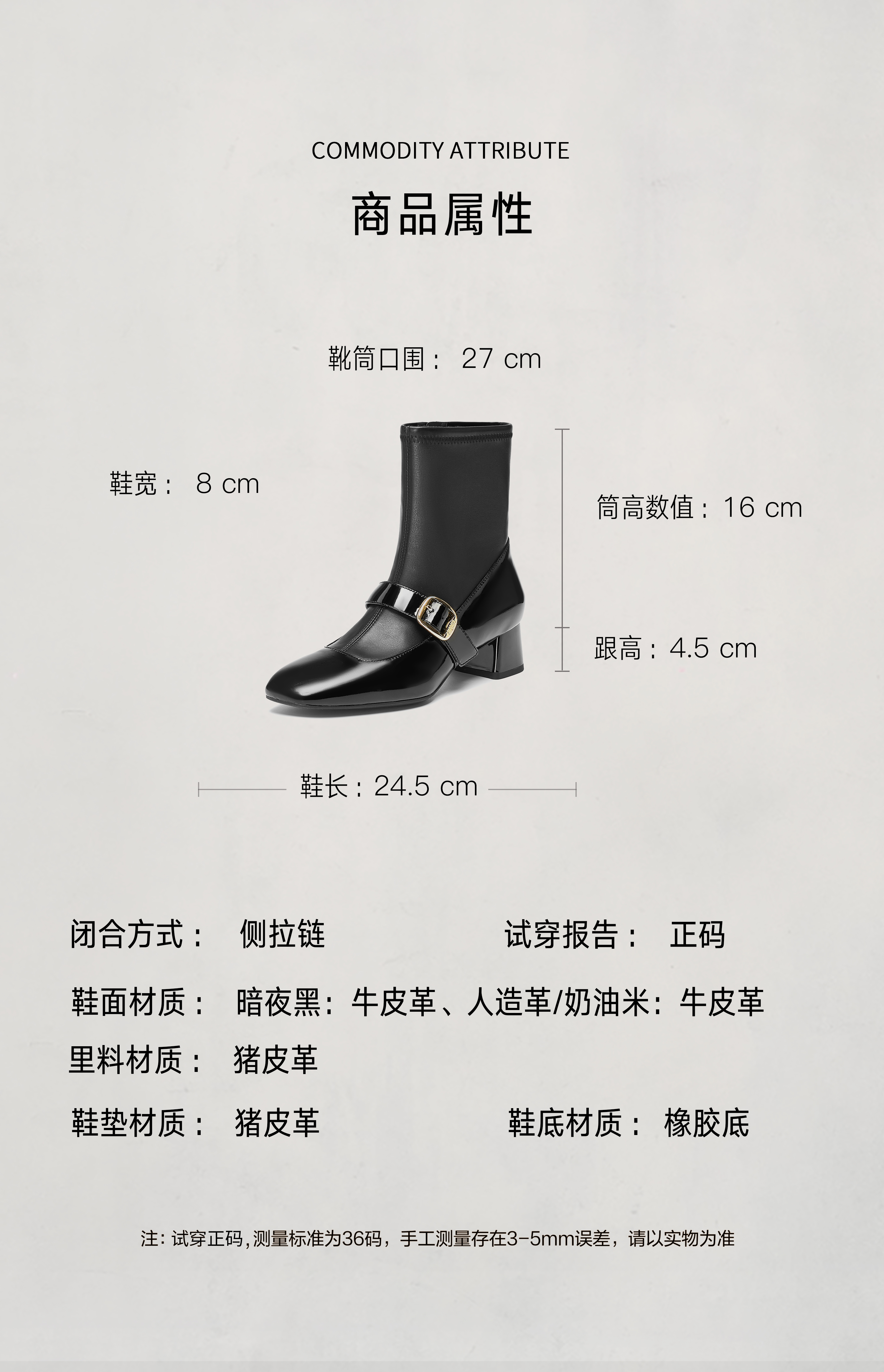 | 年份:2024年 | 色系:米色 | 参考标准尺码:36码 | 跟高数值:4.5CM | 筒高数值:16CM |