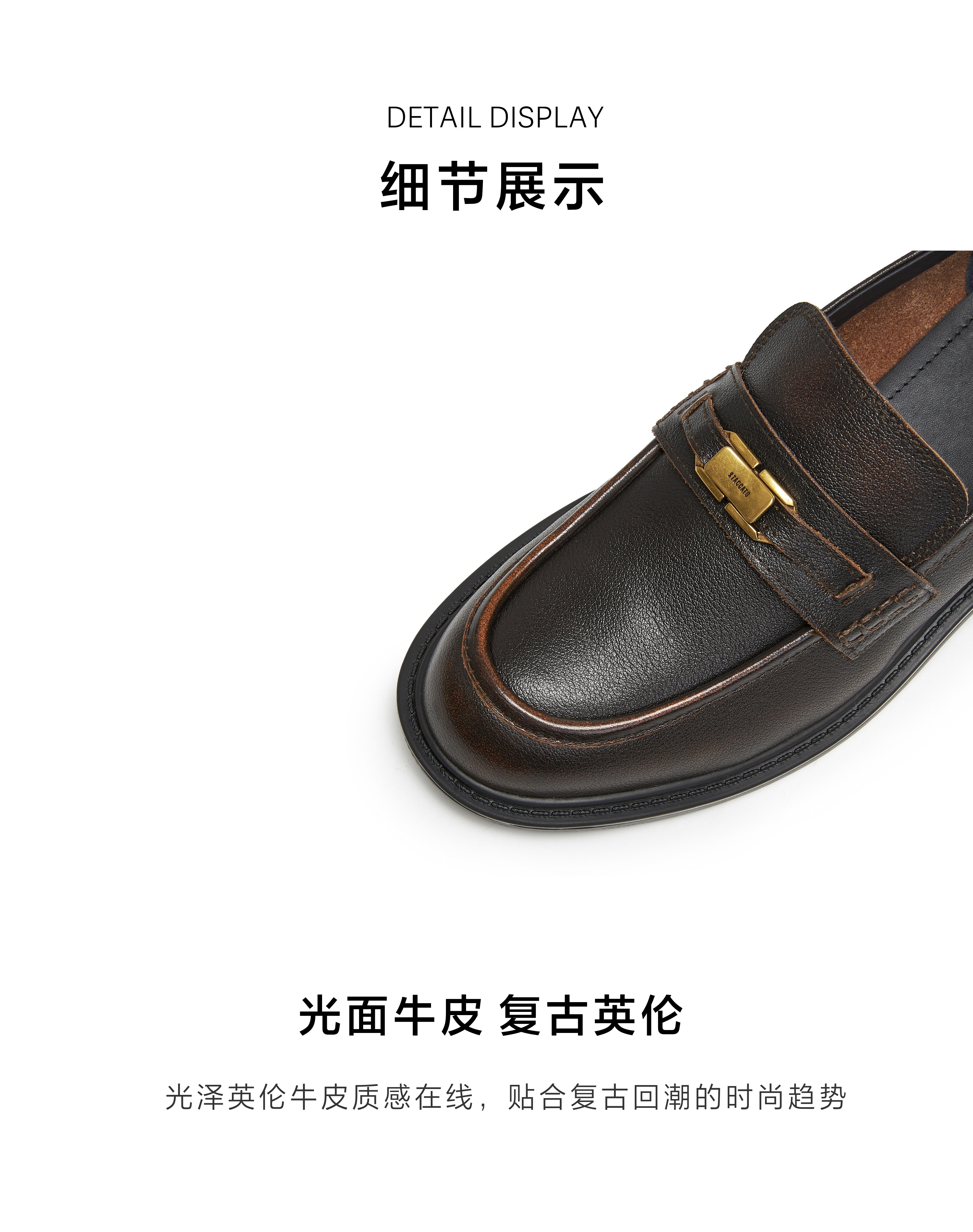 | 鞋垫材质:牛皮革 | 皮质特征:擦色皮 | 鞋类流行款式:乐福鞋 |