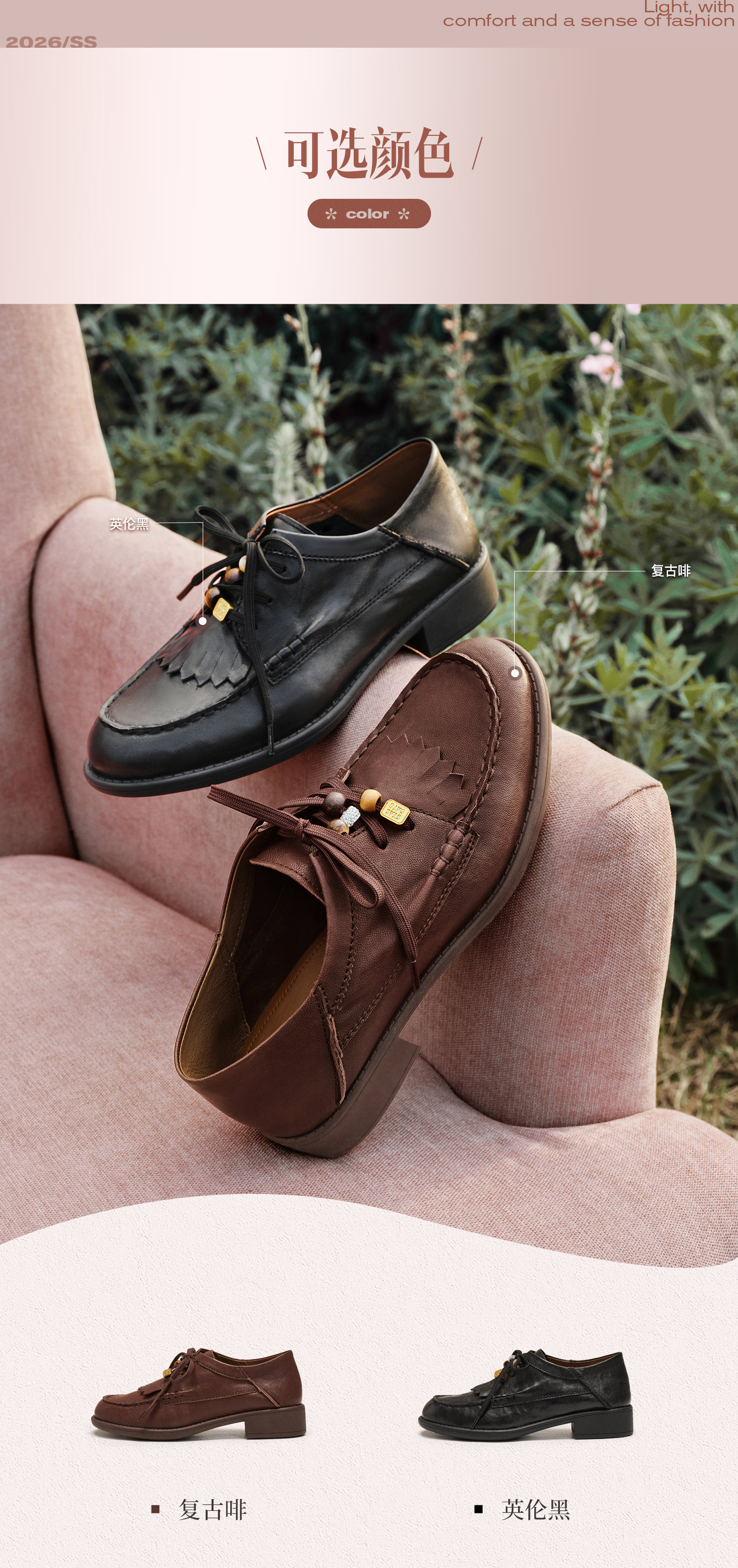 | 配跟:无 | 上市时间:2026年春季 | 鞋类流行款式:牛津鞋 | 鞋头款式:圆头 | 鞋面图案:纯色 |