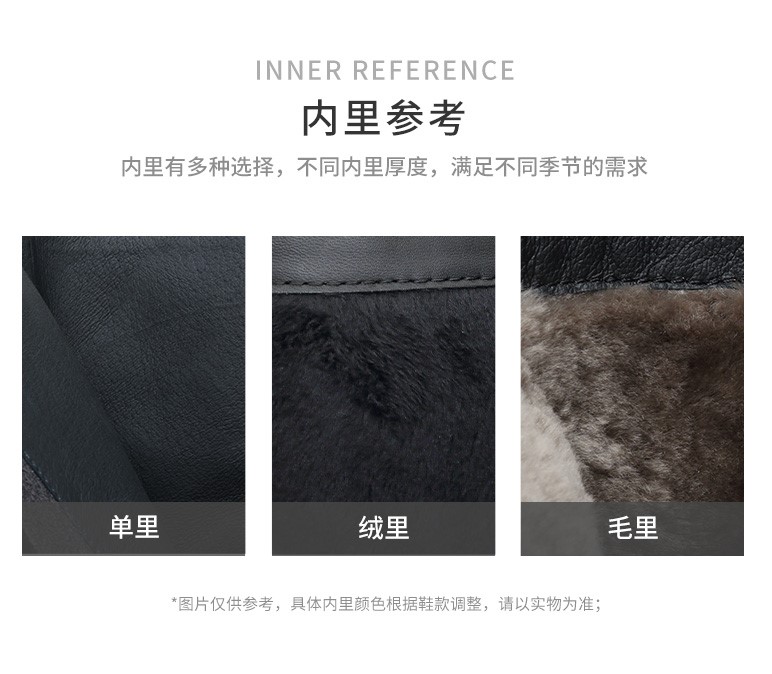 | 鞋底材质:橡胶发泡底 | 靴筒内里材质:织物面料猪皮革 | 内增高:无 | 鞋面材质:织物面料牛皮革 | 闭合方式:套筒 |