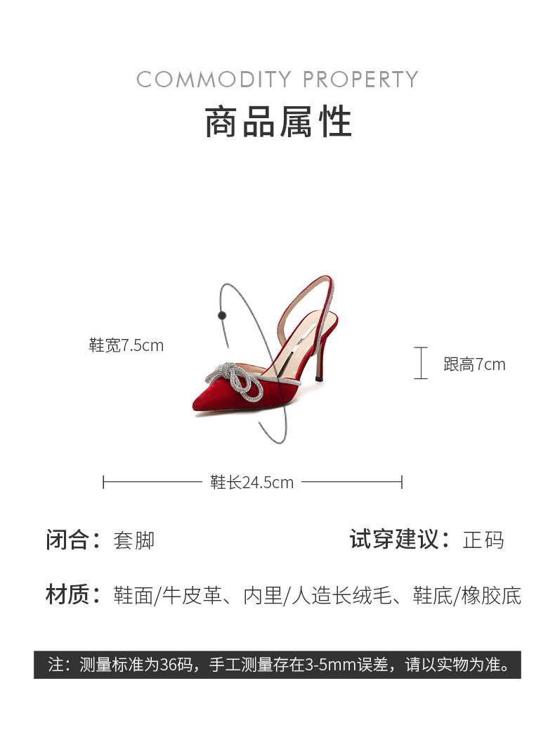 | 跟高数值:9CM | 色系:红色 | 货品来源:外购 | 配跟:无 | 性别:女子 |