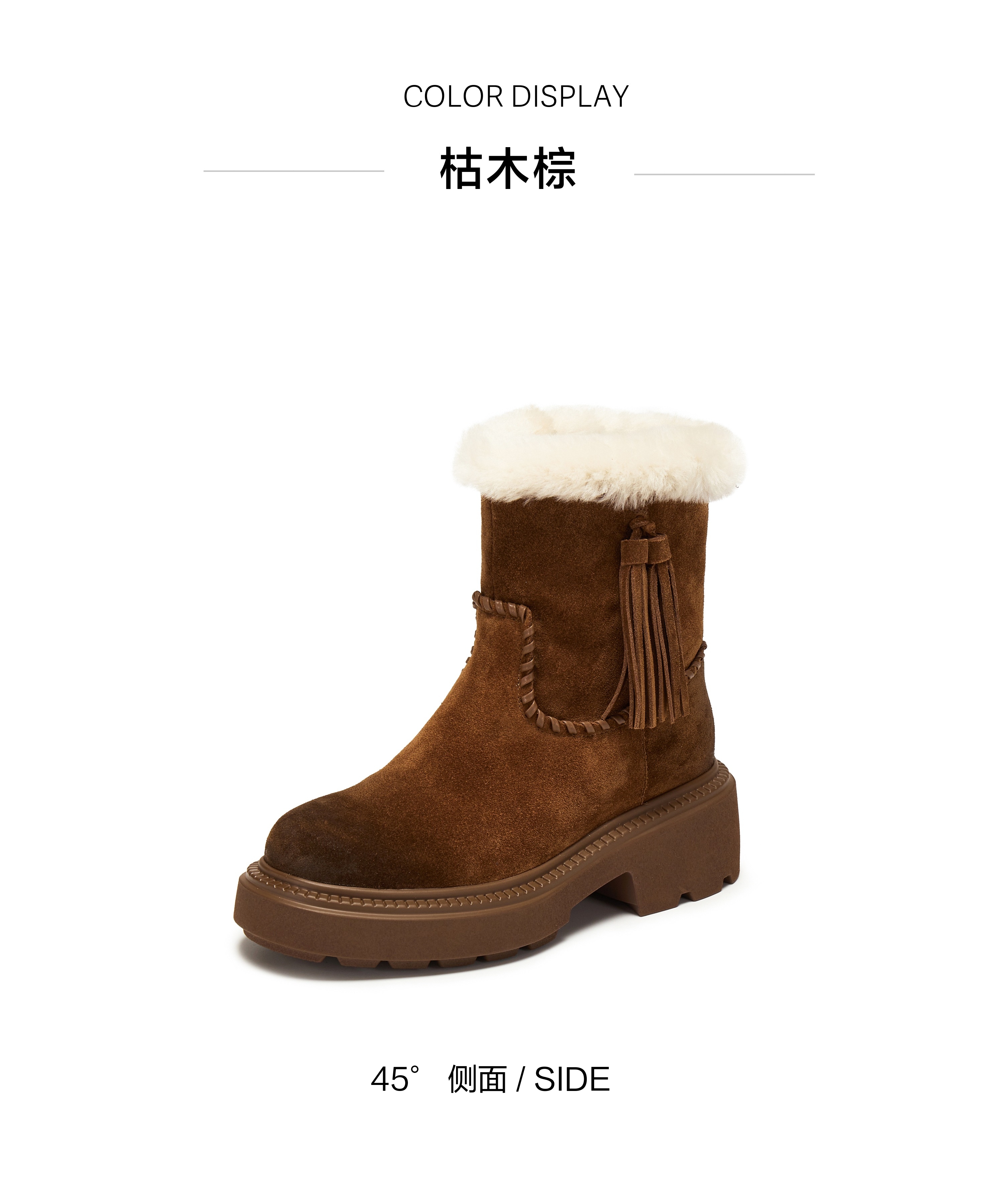| 款式季节:冬季 | 皮质特征:绒面皮 | 前掌高度:无 |