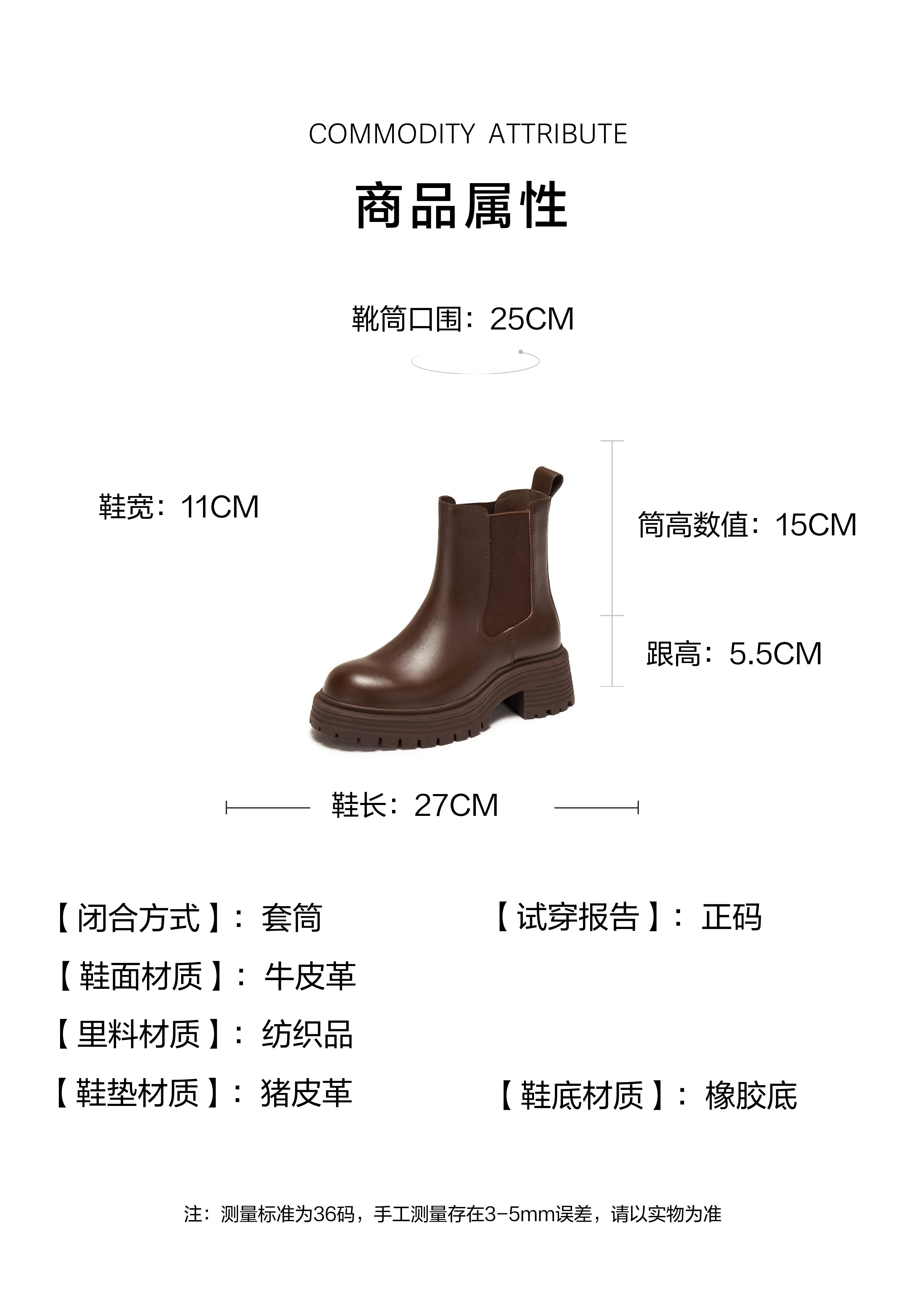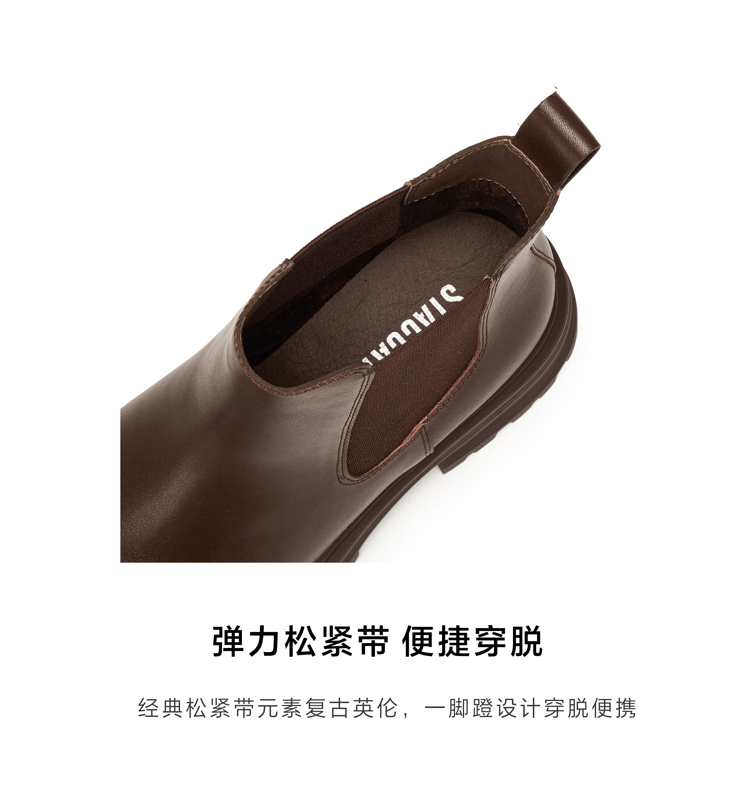 | 帮面材质:牛皮革 | 配跟:无 | 靴筒口围:25CM | 上市时间:2024年冬季 | 鞋类流行款式:切尔西靴 |