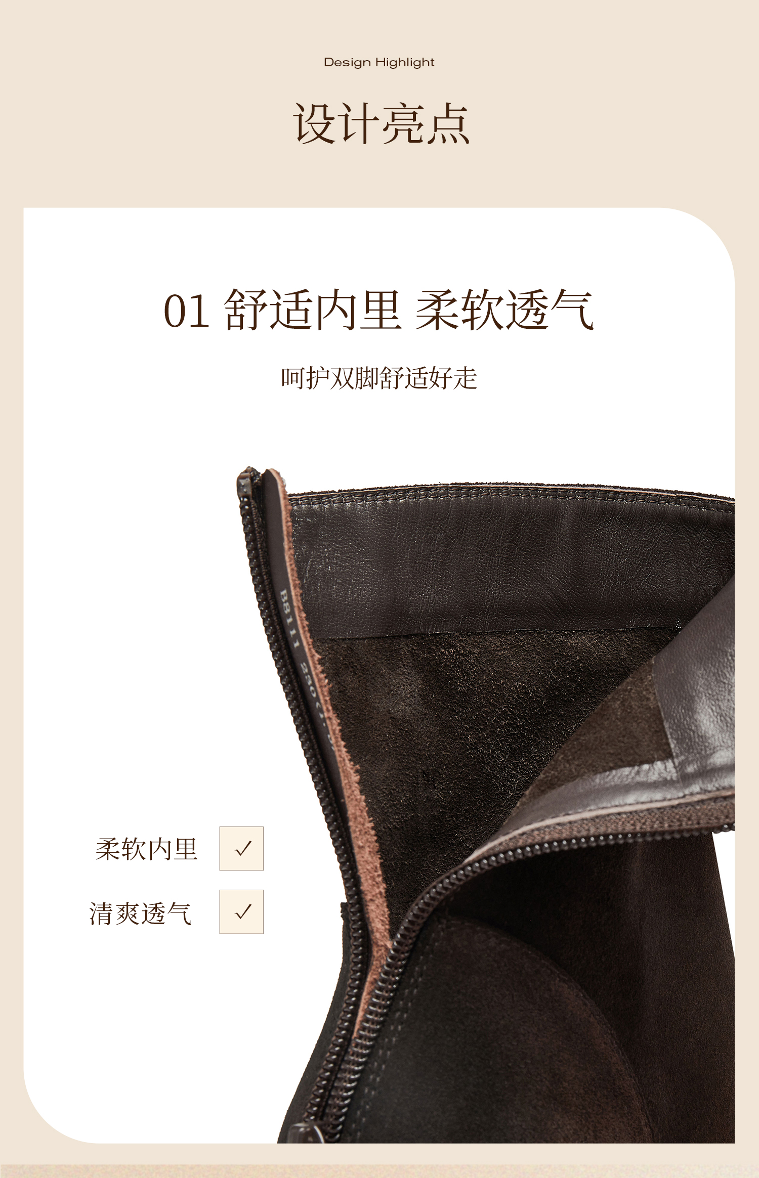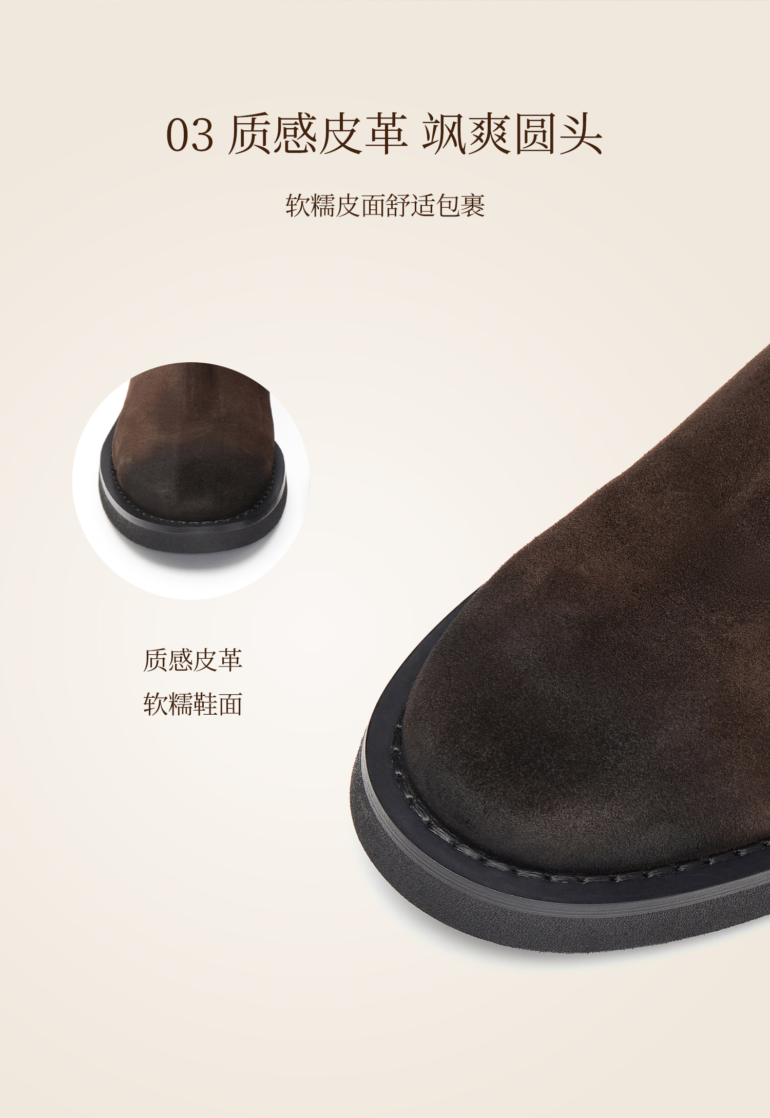 | 帮面材质:牛剖层革 | 配跟:无 | 靴筒口围:26.5CM | 上市时间:2025年冬季 | 鞋类流行款式:时装靴 |