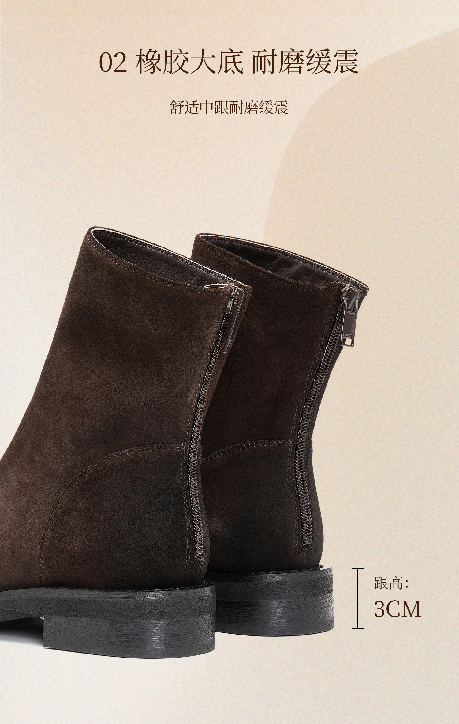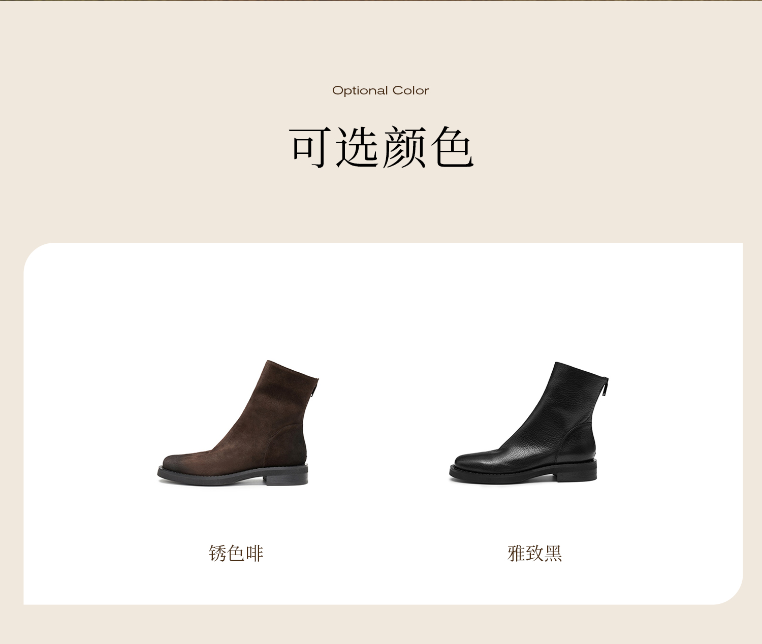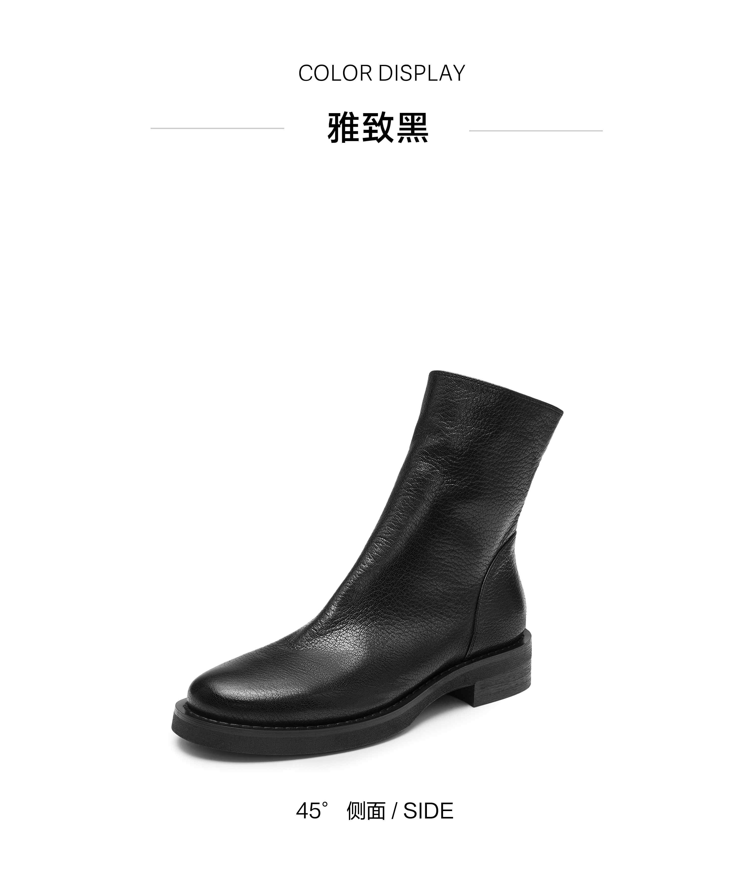 | 鞋底材质:橡胶底 | 靴筒内里材质:羊皮革猪皮革 | 内增高:无 | 鞋面材质:牛剖层皮革 | 闭合方式:后拉链 |