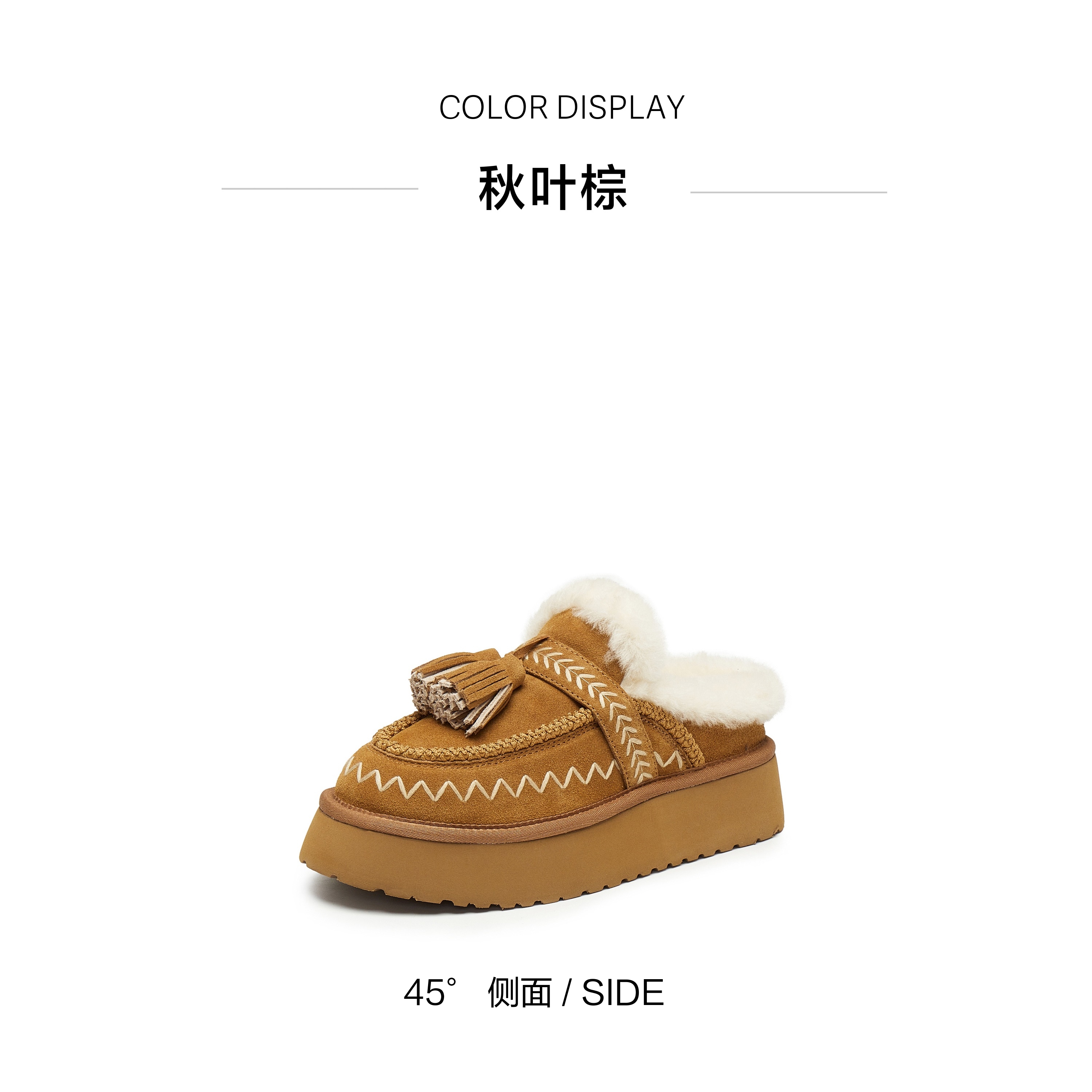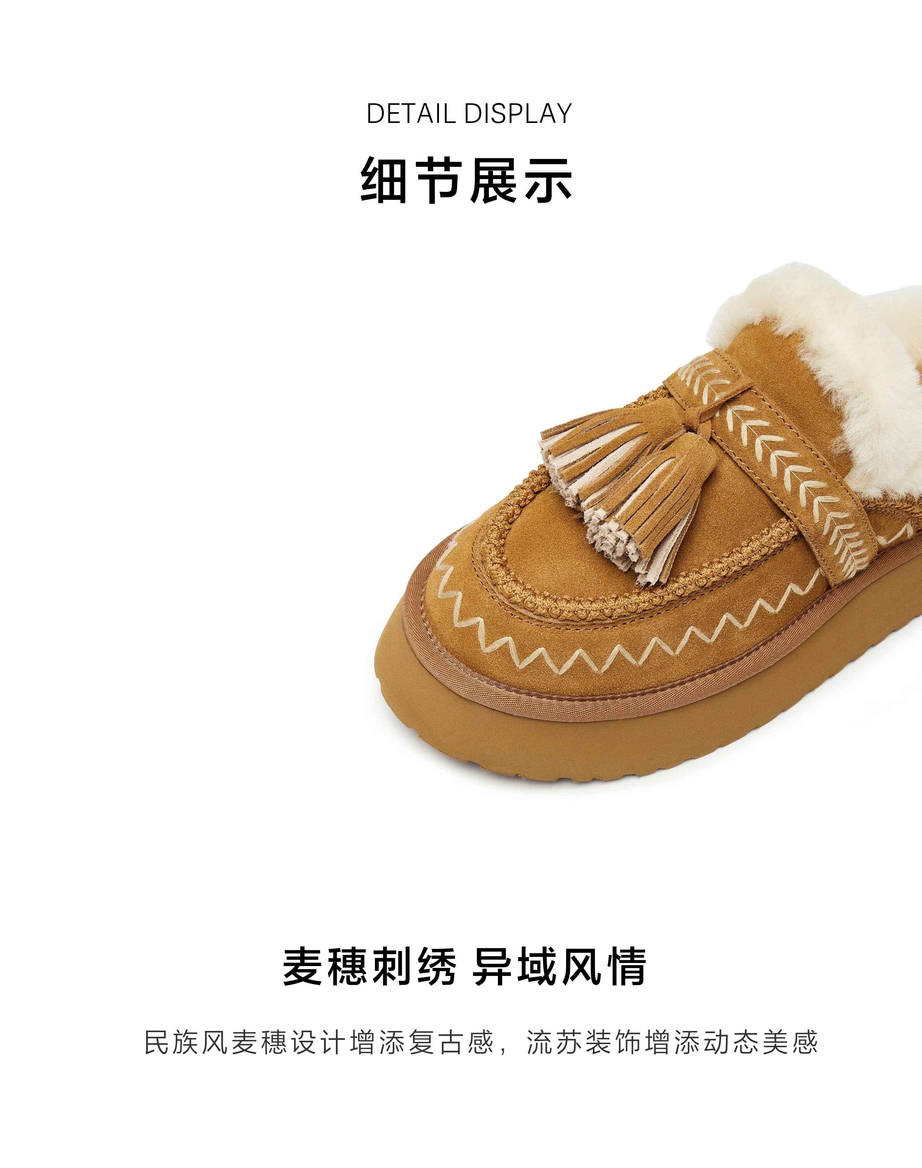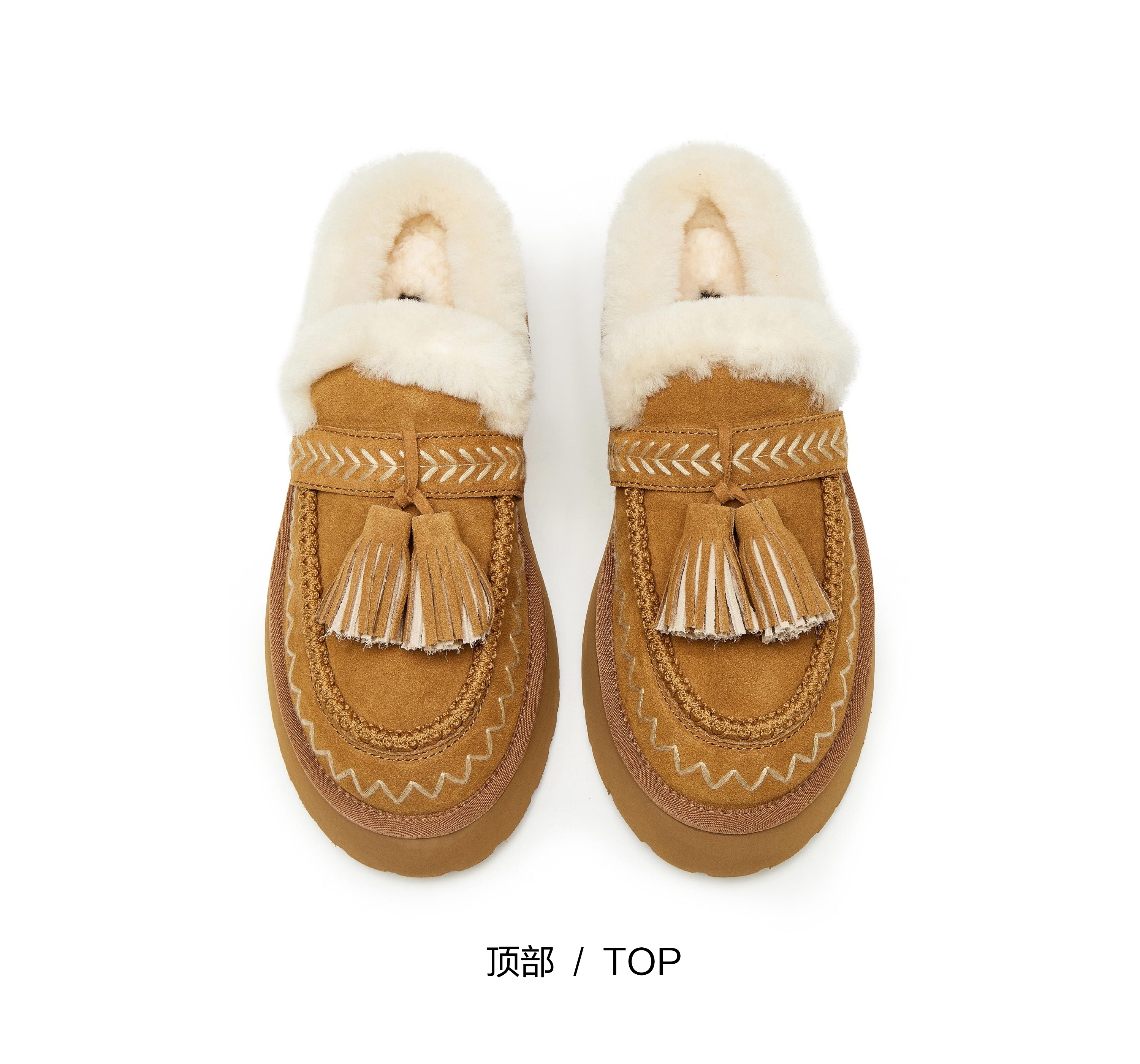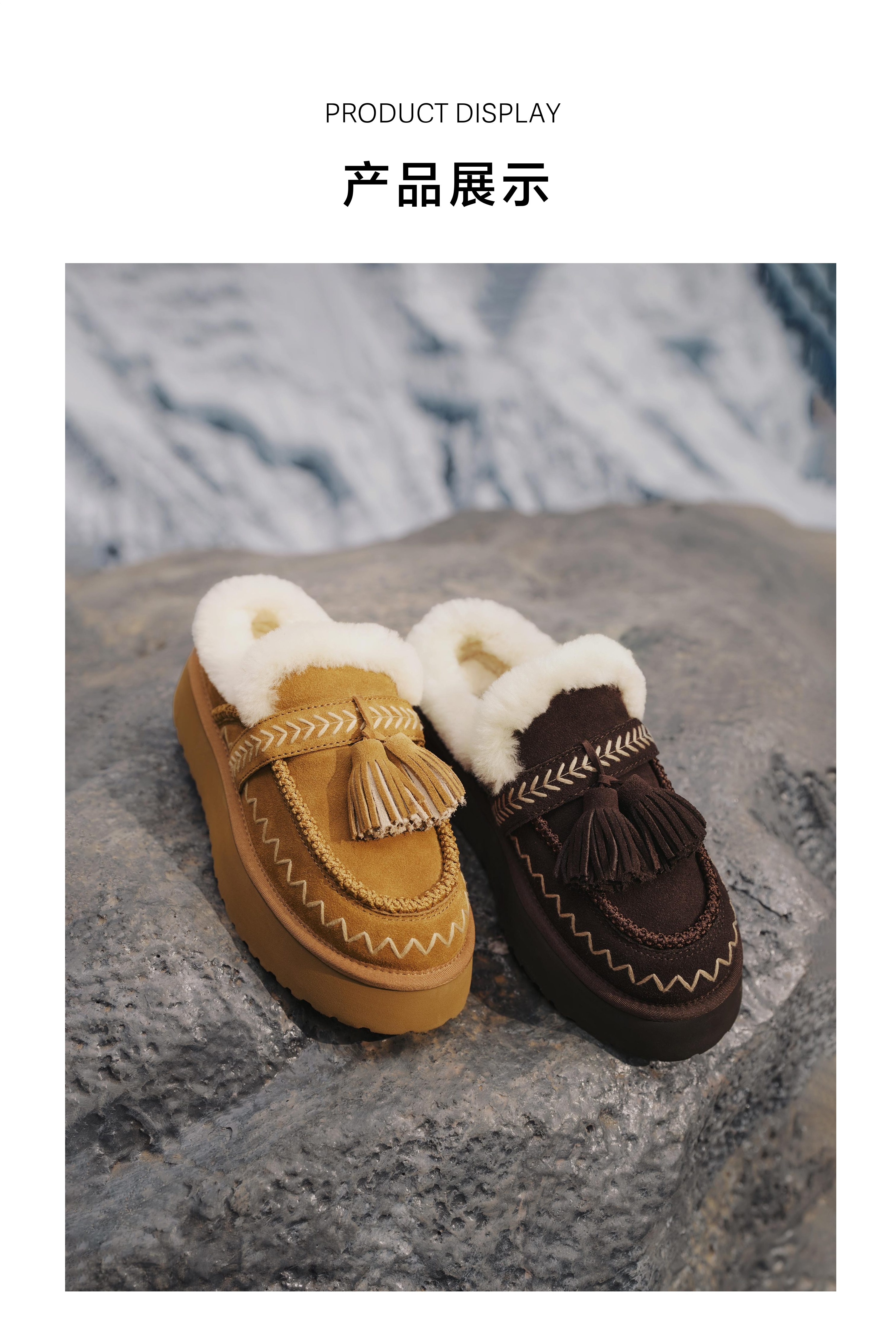 | 帮面材质:牛剖层革 | 配跟:无 | 靴筒口围:32CM | 上市时间:2025年冬季 | 鞋类流行款式:雪地靴 |