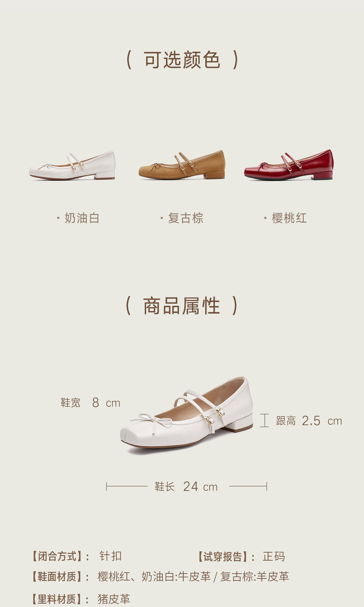 | 所在区域:电子商务 | 配跟:无 | 开口深度:浅口 | 风格分类:玛丽珍鞋 | 上市时间:2025年春季 |