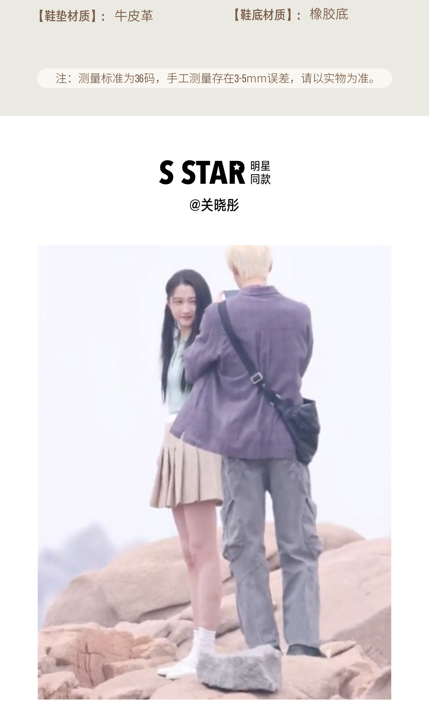 | 鞋底材质:橡胶底 | 内增高:无 | 鞋面材质:羊皮革 | 适用场合:日常休闲 | 闭合方式:针扣 |