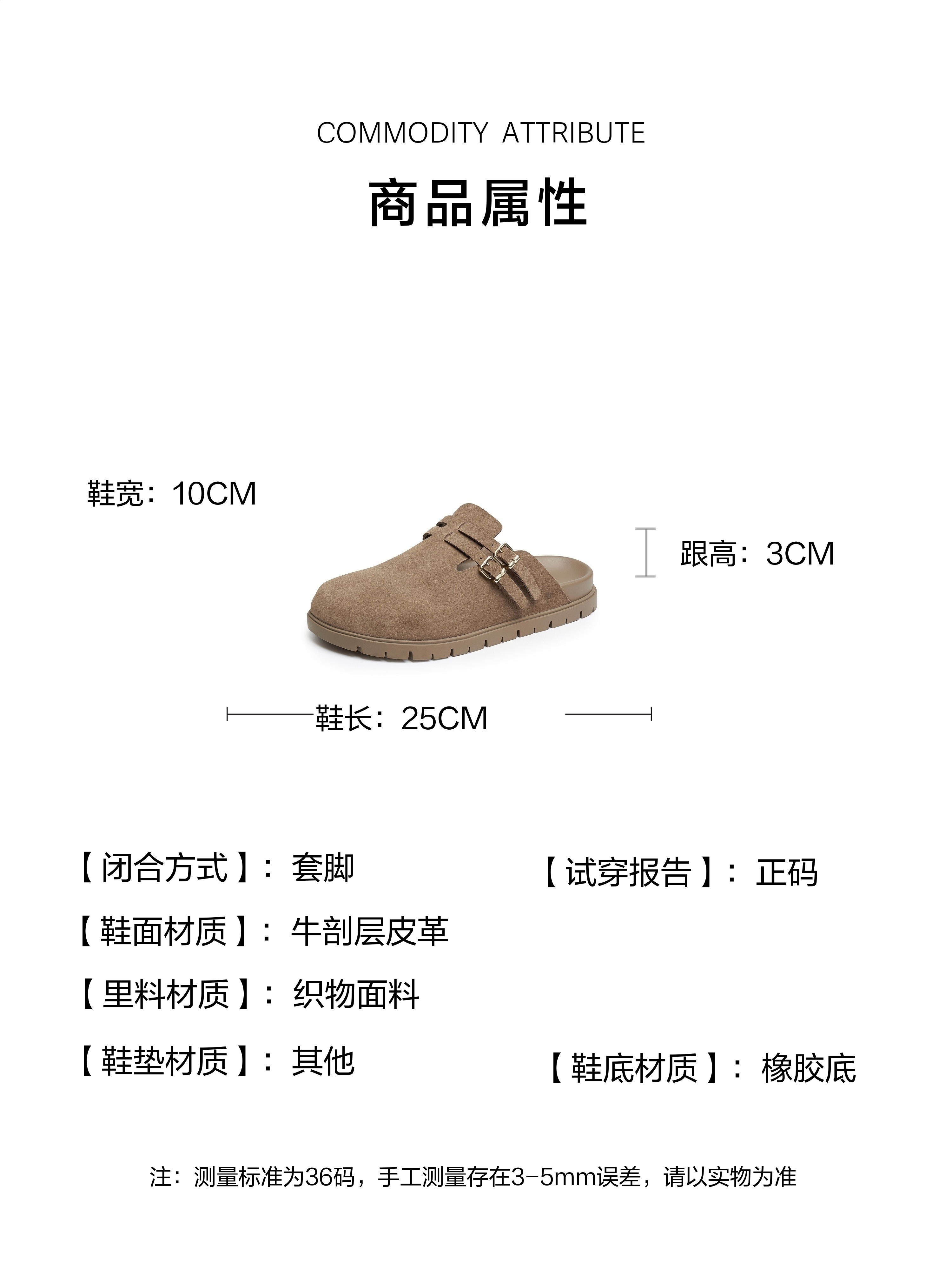 | 风格:时尚潮流 | 年份:2025年 | 色系:杏色 | 参考标准尺码:36码 | 跟高数值:3CM |