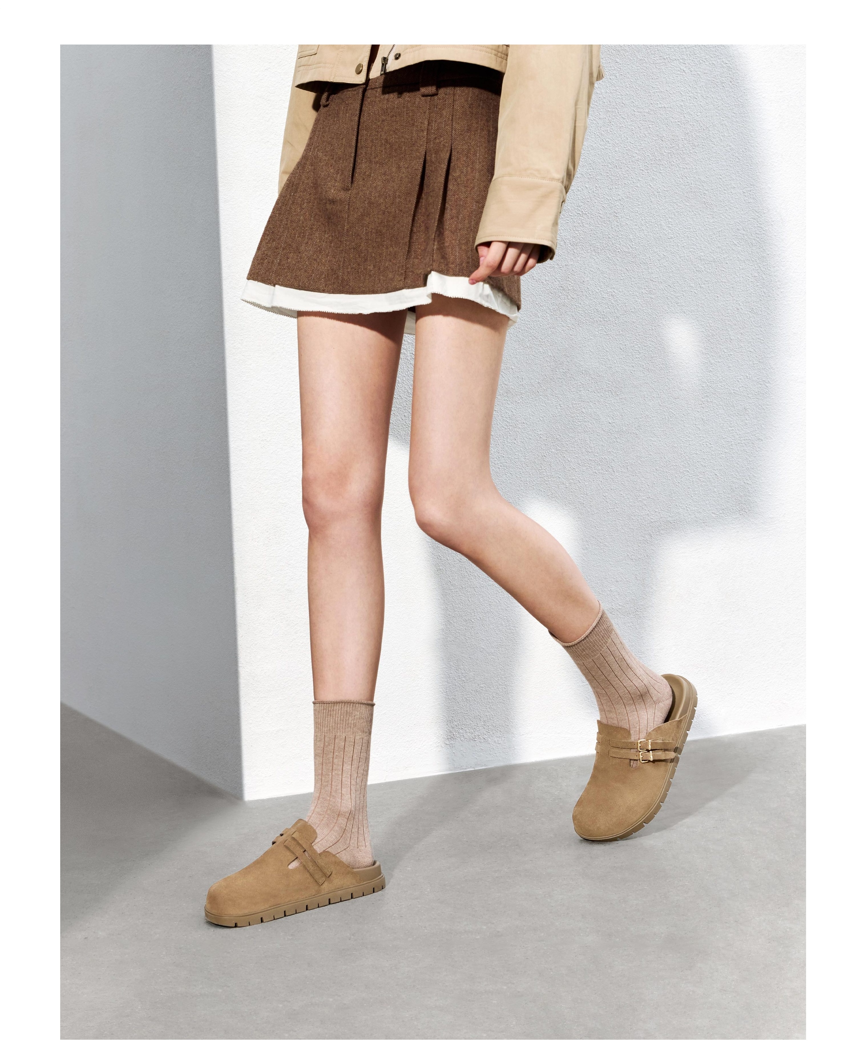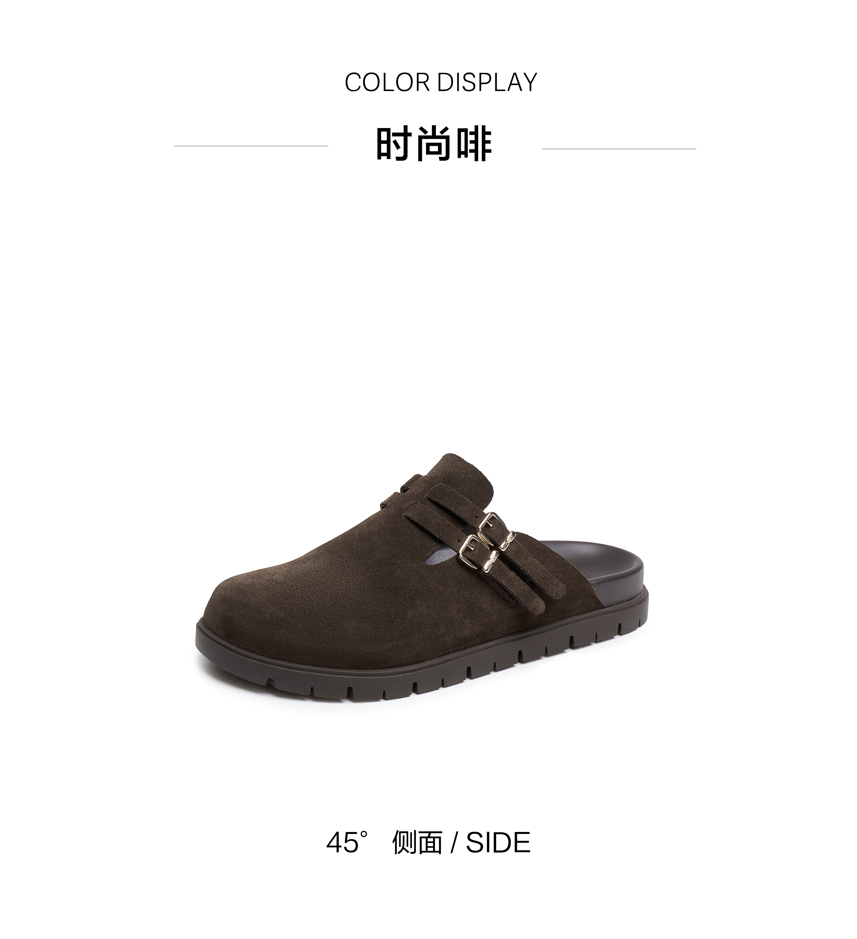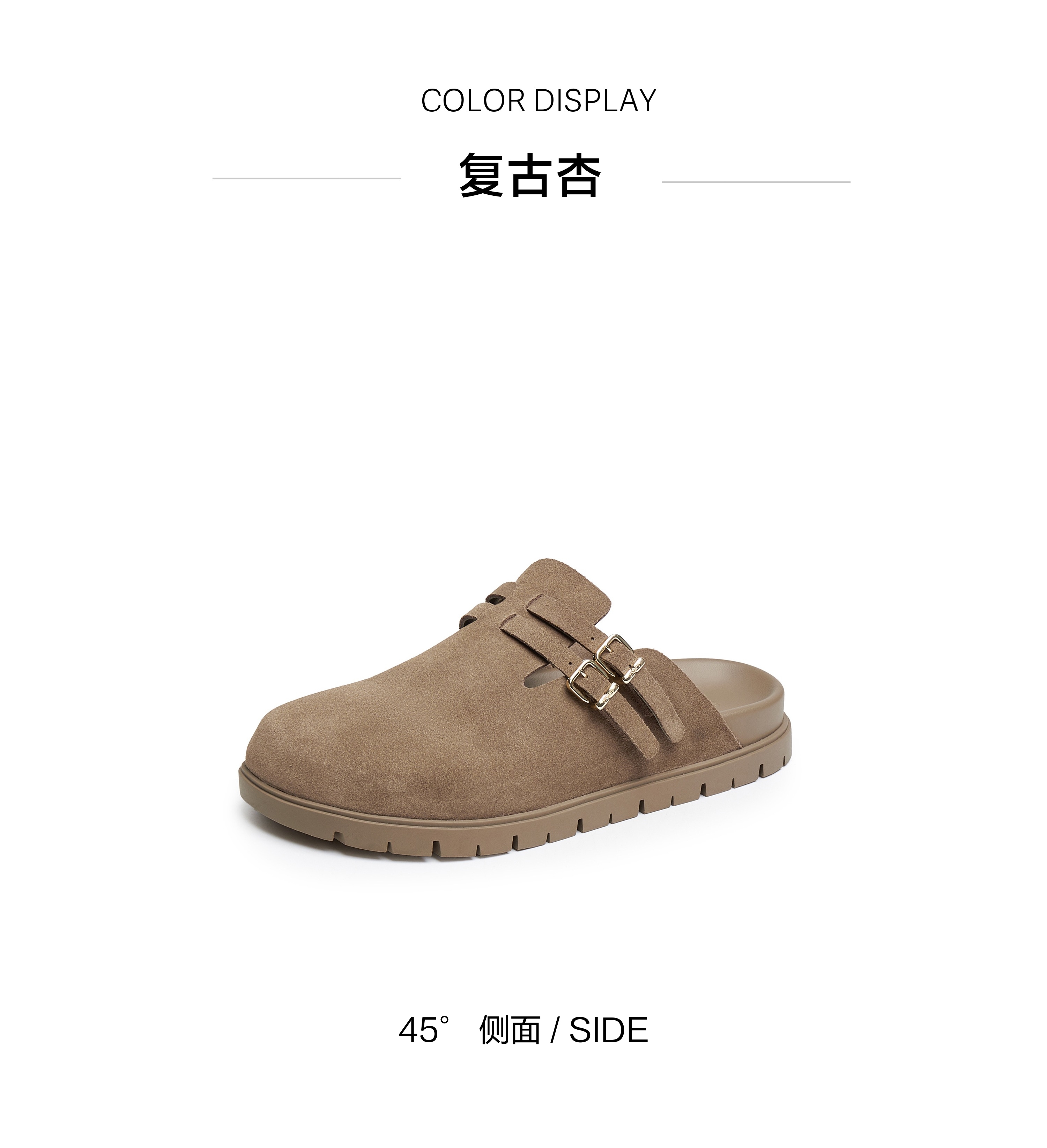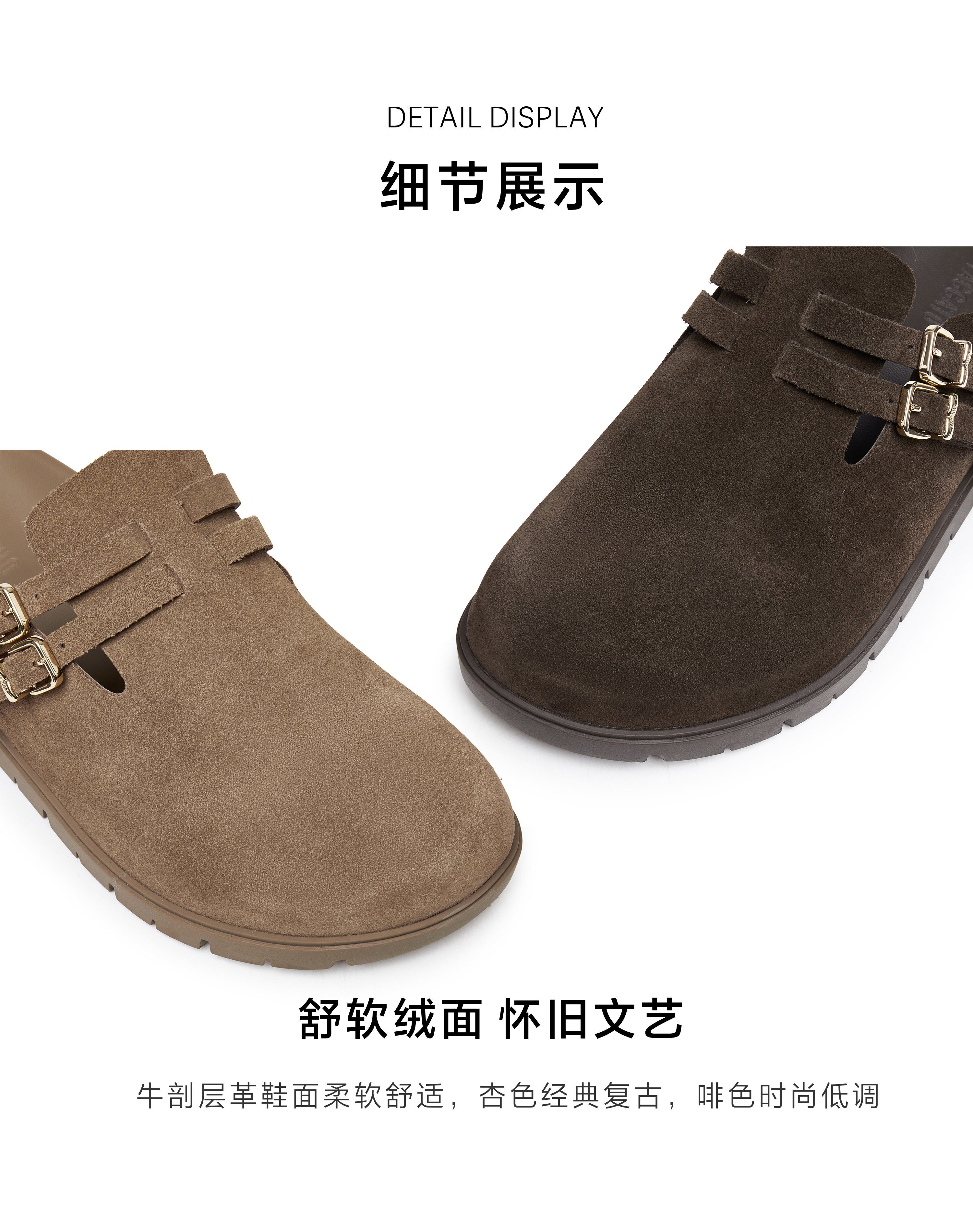 | 渠道划分:线下同步 | 前掌高度:1CM | 皮质特征:绒面皮 | 防水台高度:1CM | 销售季:2025年春季 |