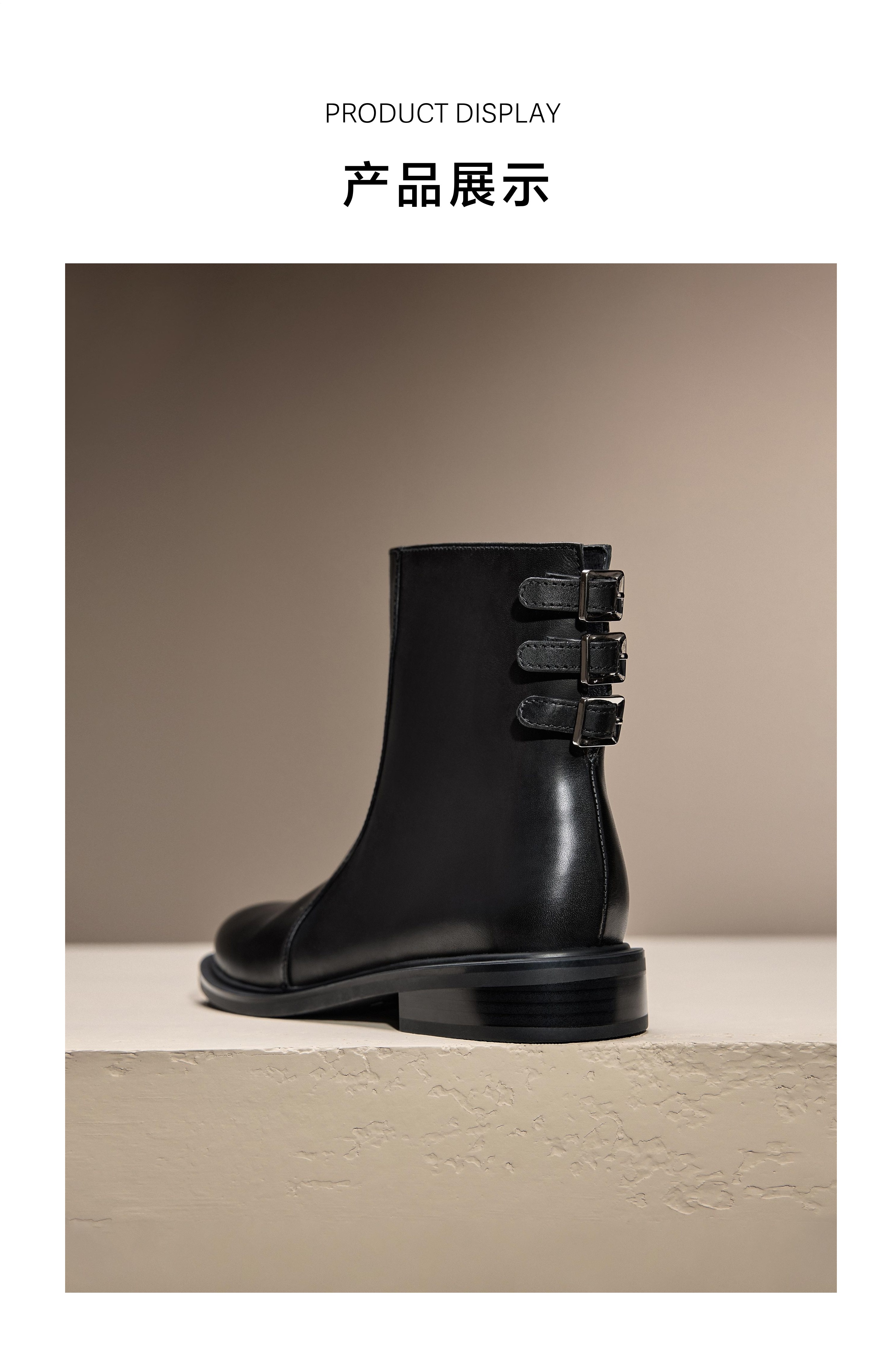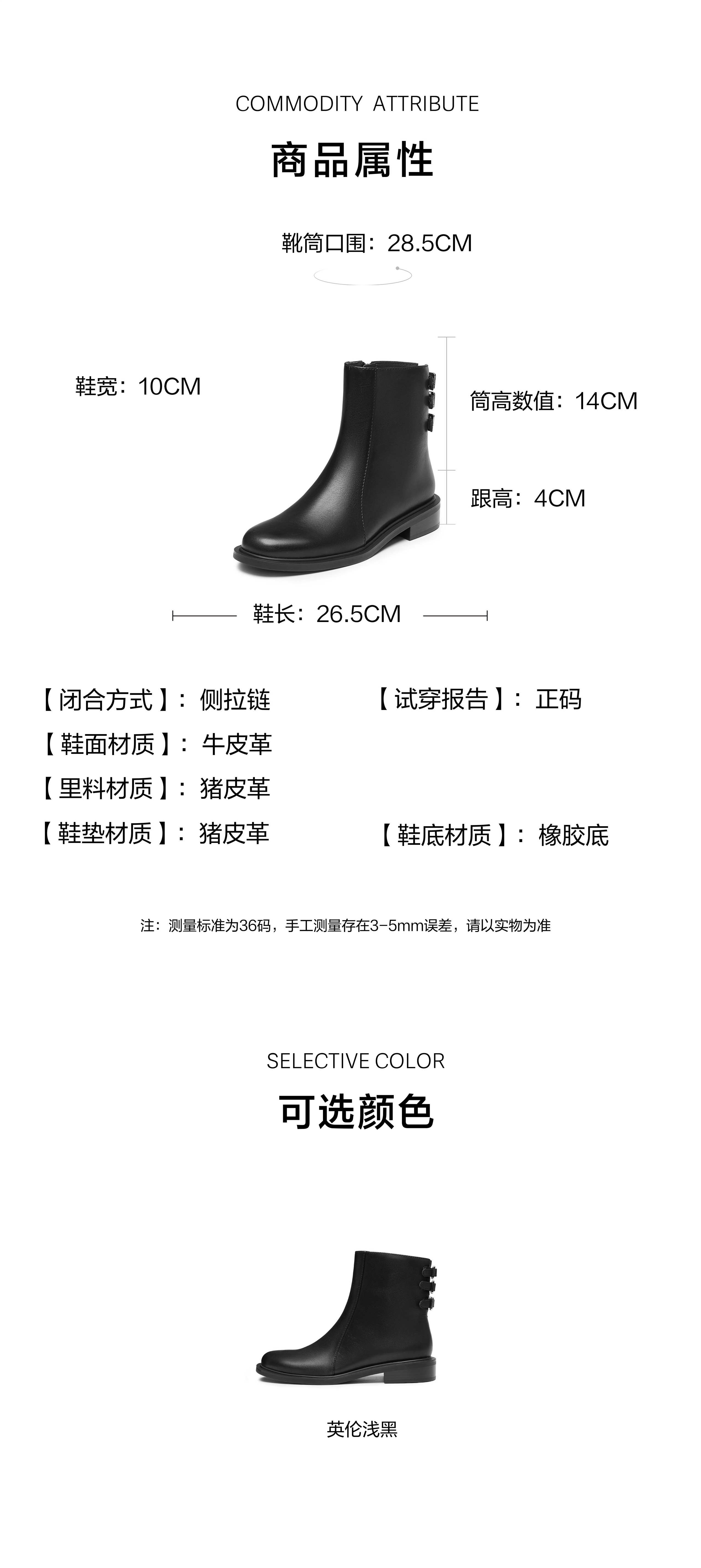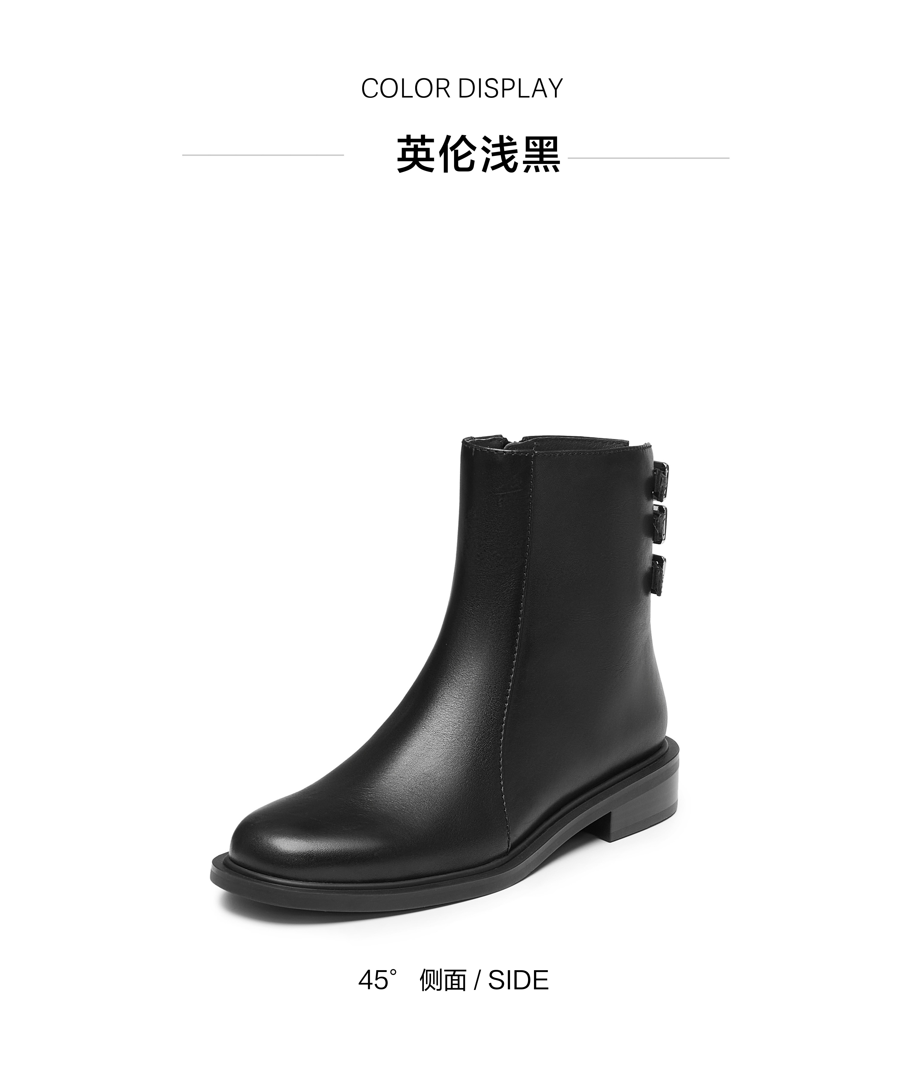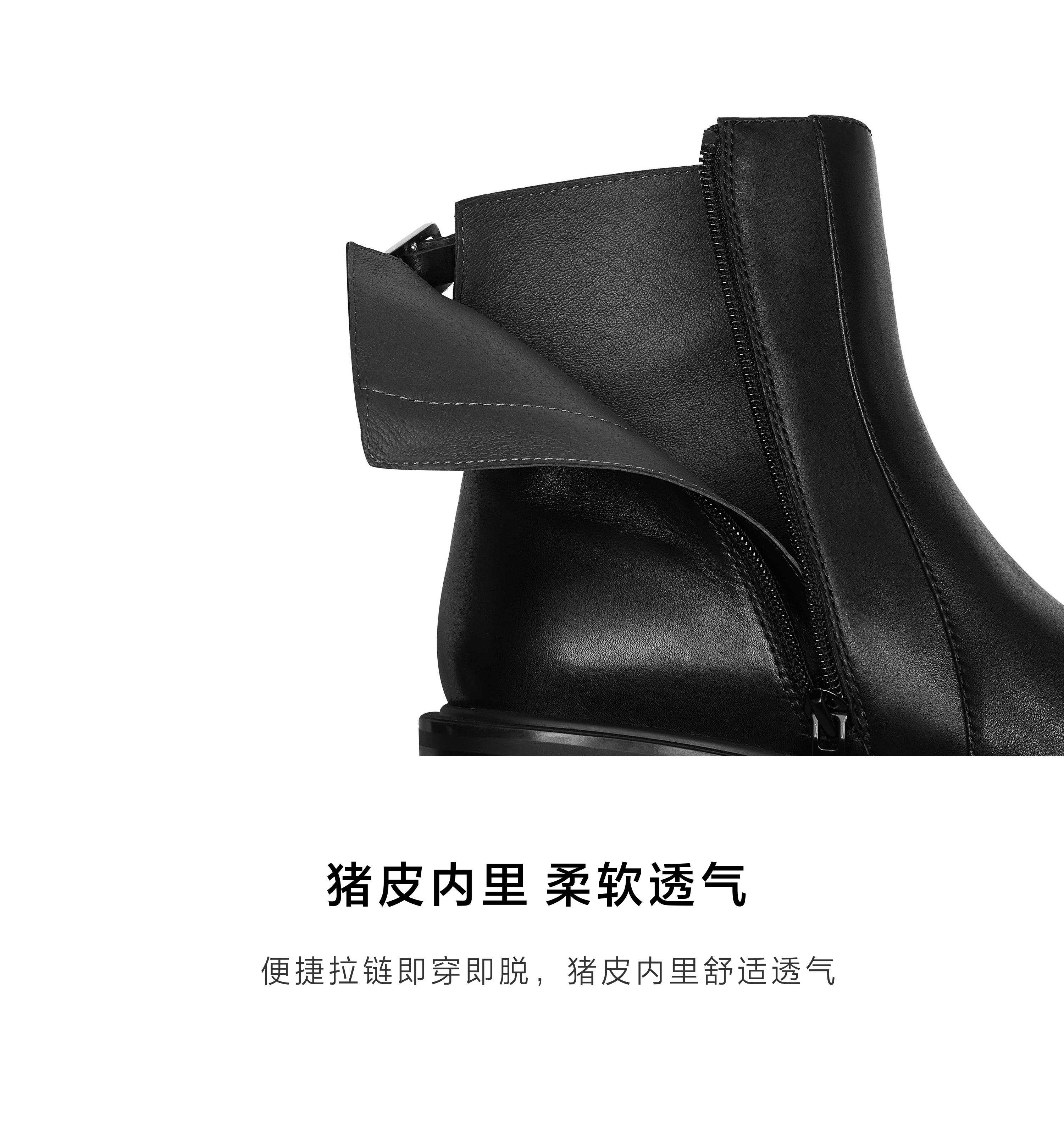 | 鞋底材质:橡胶底 | 靴筒内里材质:猪皮革 | 内增高:无 | 鞋面材质:牛皮革 | 闭合方式:侧拉链 |