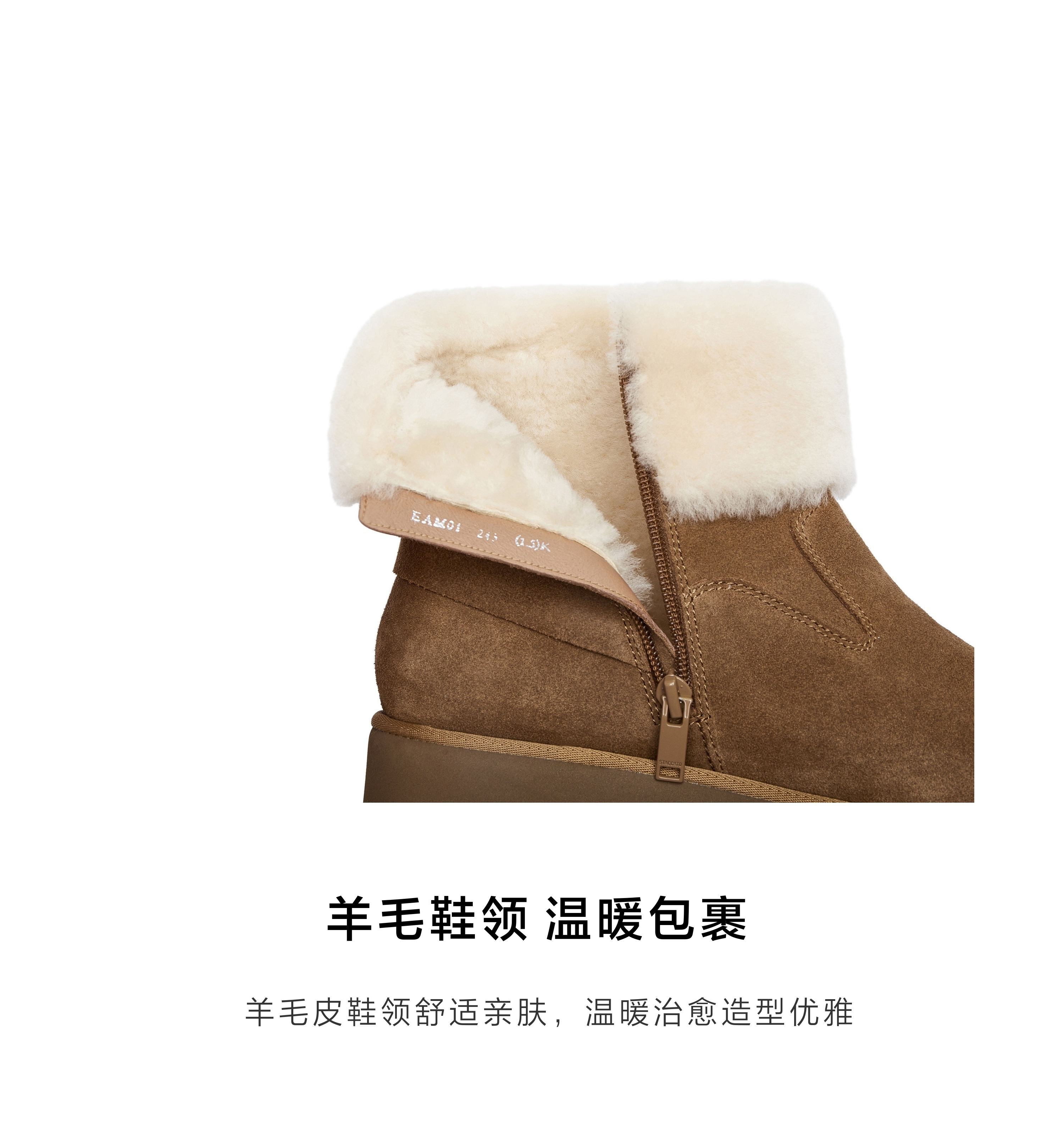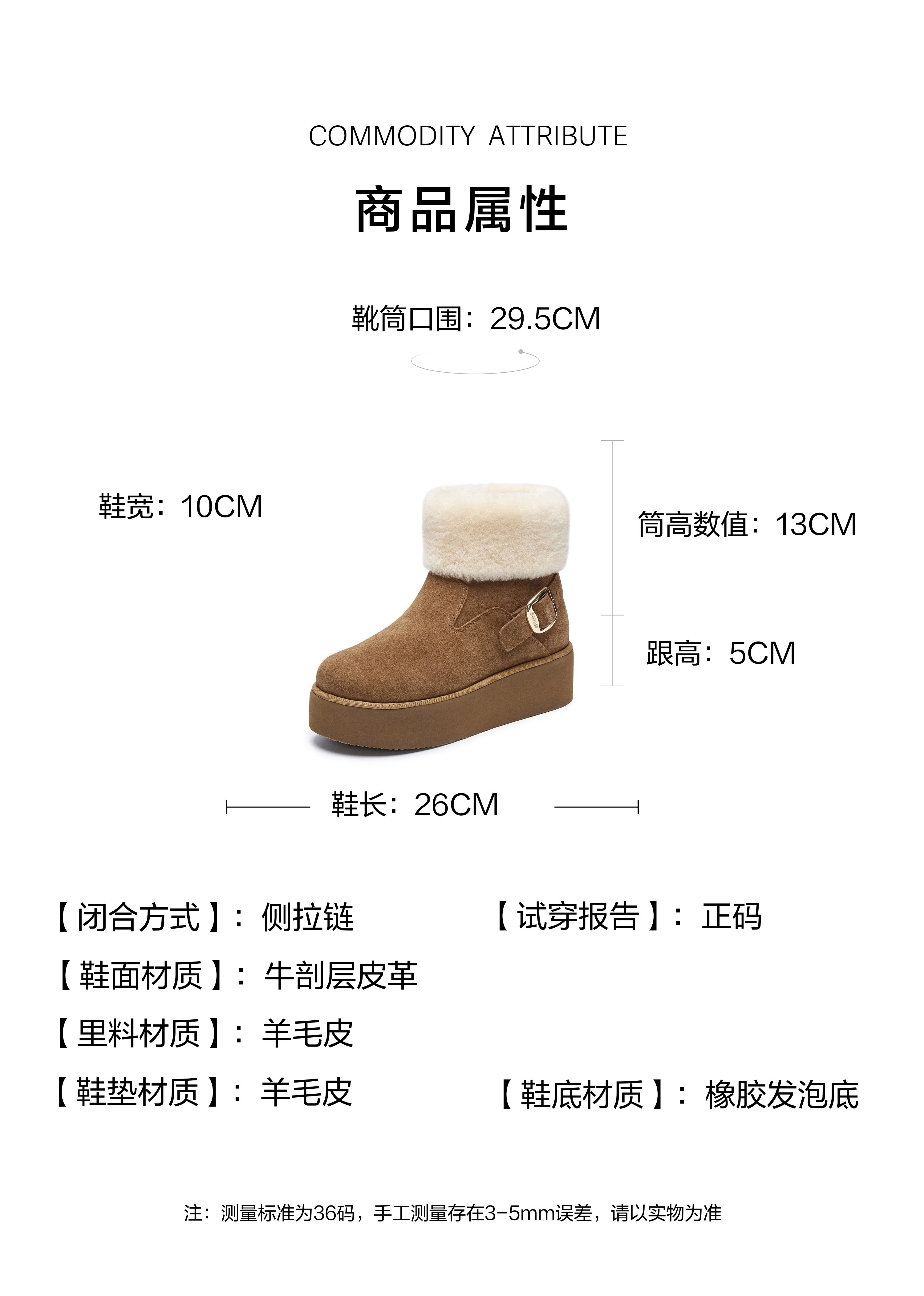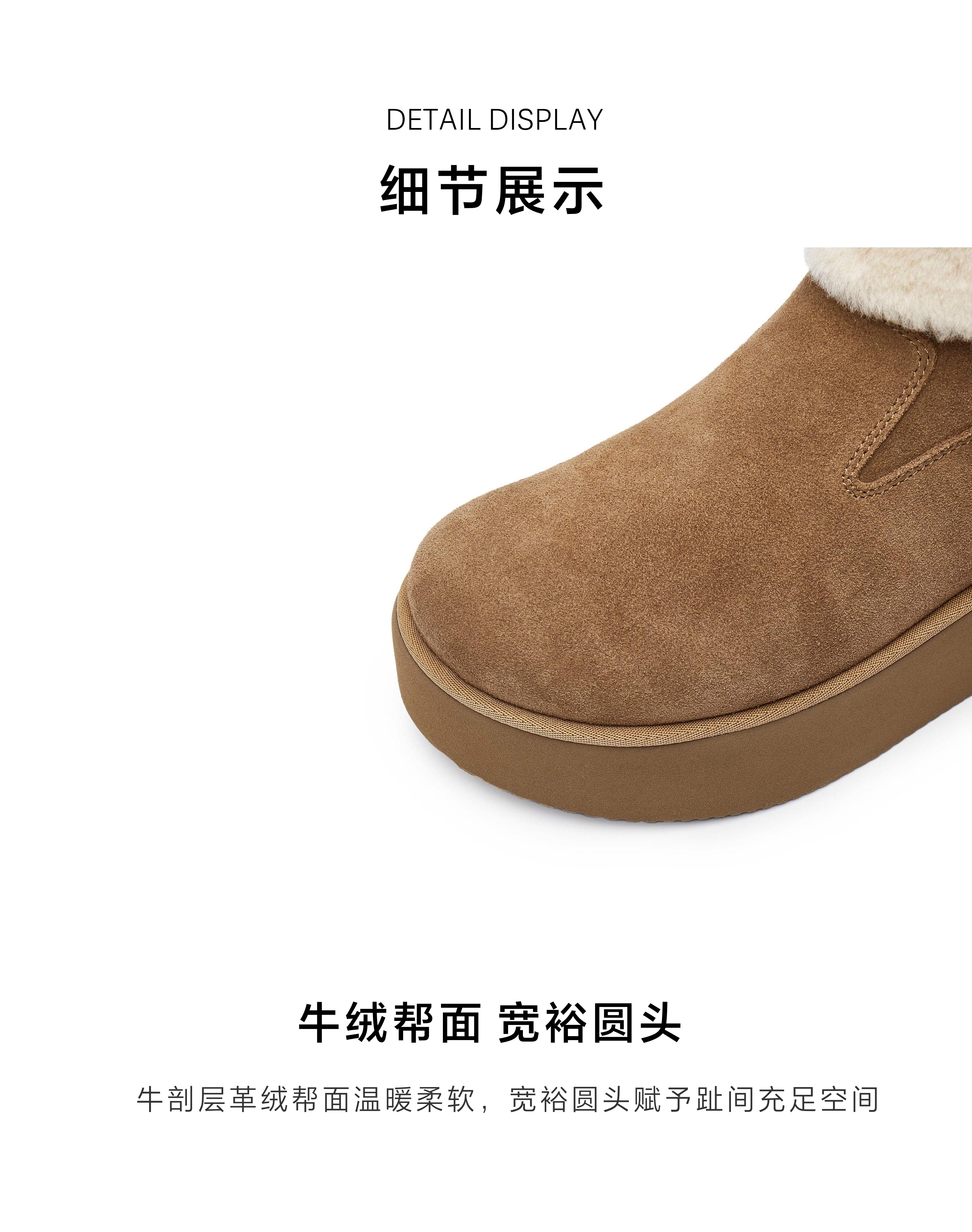 | 帮面材质:牛剖层革 | 配跟:无 | 靴筒口围:29.5CM | 上市时间:2024年冬季 | 鞋类流行款式:雪地靴 |
