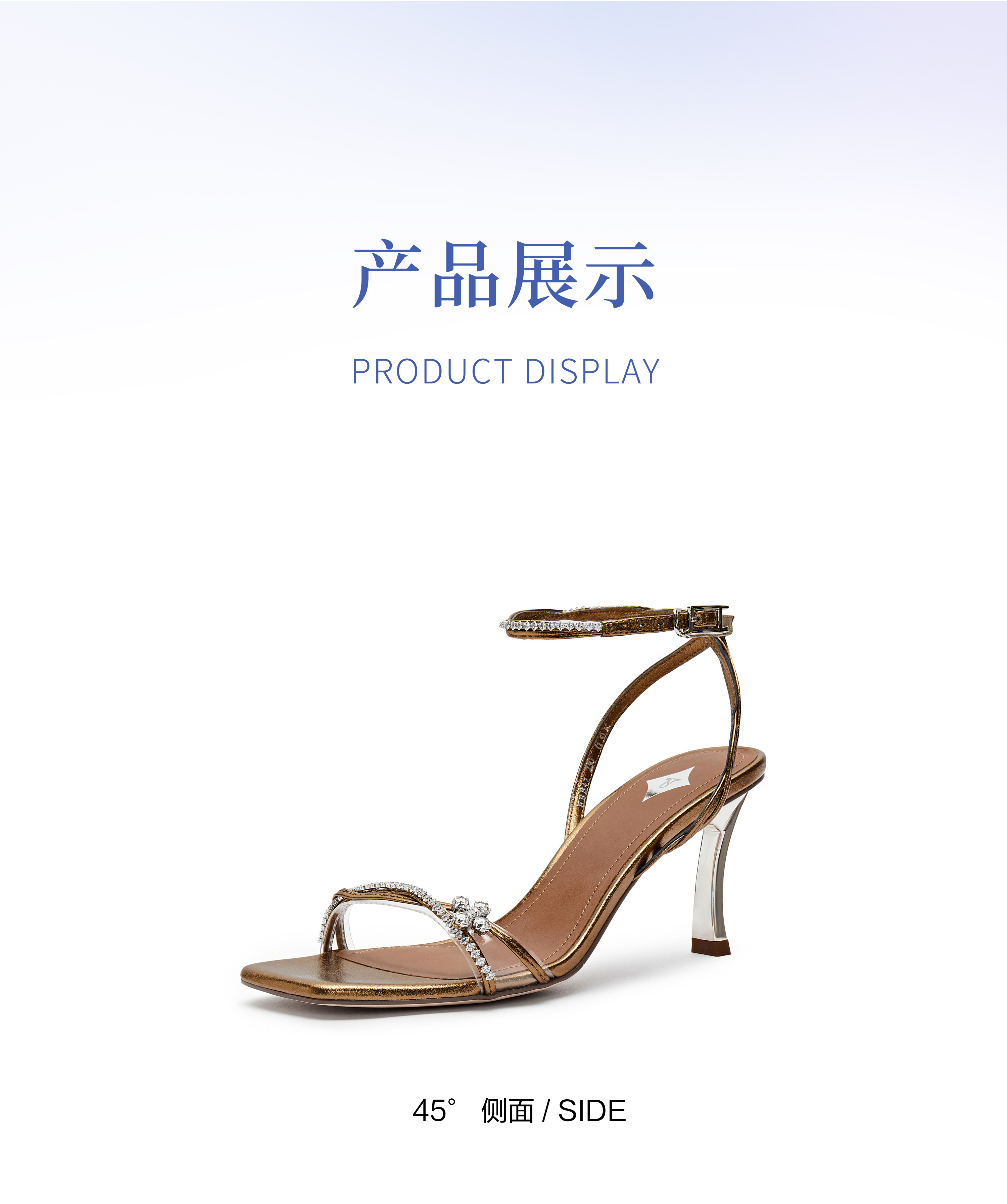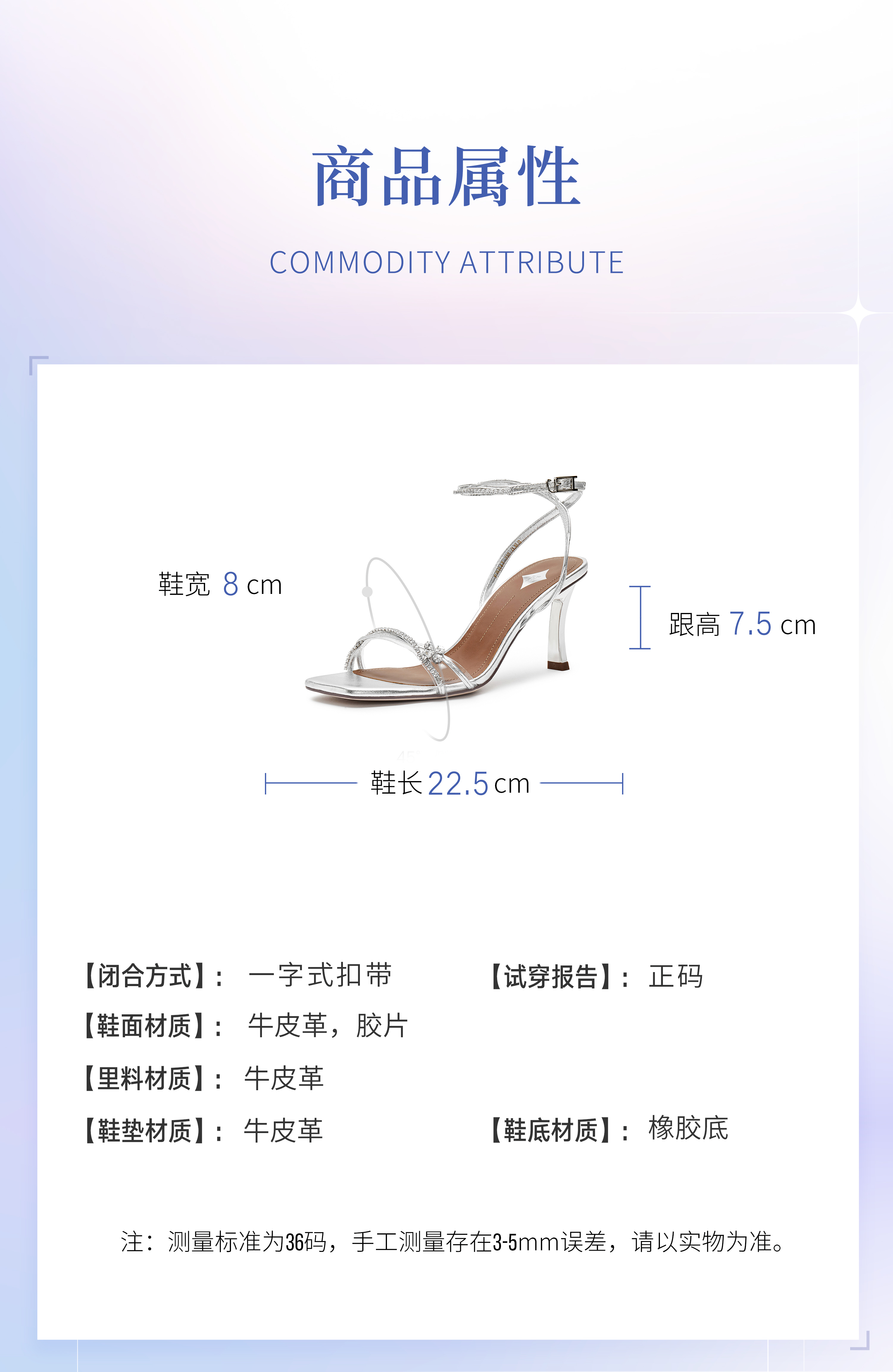 | 流行元素:水钻 | 参考鞋长(女):22.5CM | 参考鞋宽(女):8CM | 闭合方式:一字式扣带 | 风格:优雅 |