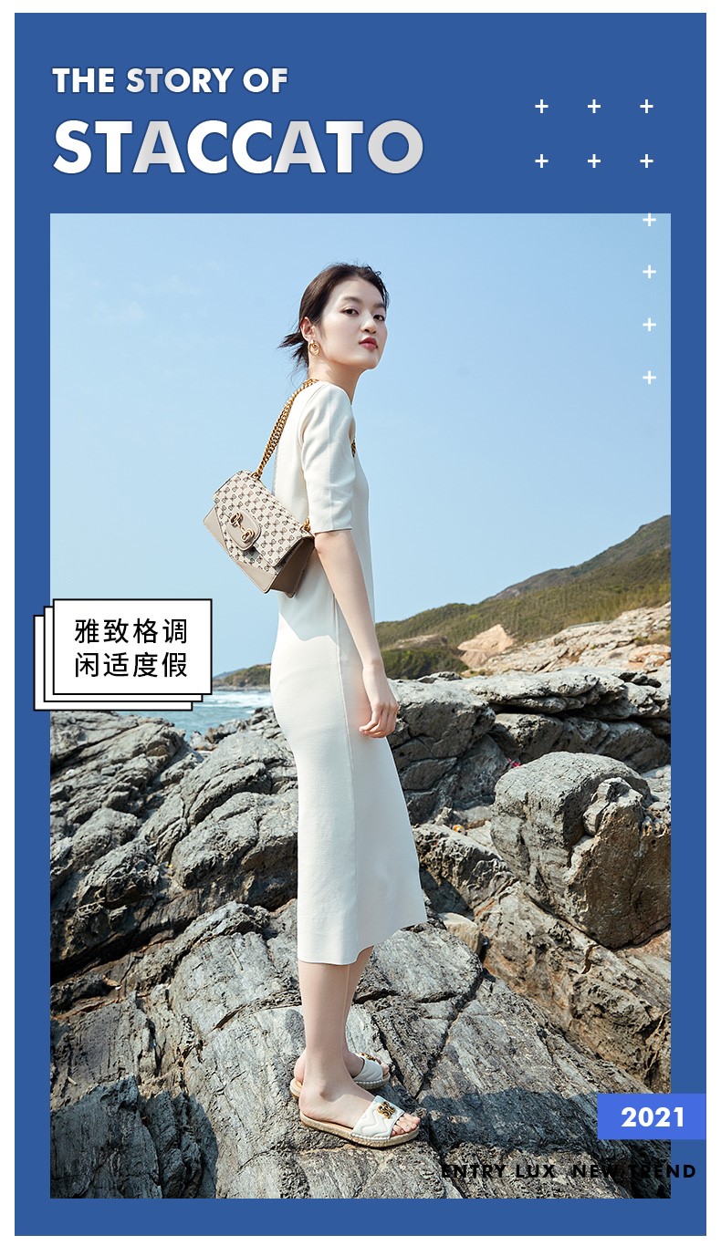 思加图(STACCATO),一个代表着年轻时尚、多元化的时装鞋履品牌,目标将时尚潮流带到女性的现实生活中。“STACCATO”是乐章上的音符,轻轻一点,谱出优美的旋律,为音乐带来多样性。穿上STACCATO单鞋的时代女性,踏出自信又轻松的脚步,犹如跳跃的音符,反映年轻与时尚的生活态度。目前品牌开设门店已超1100家,遍布中国、韩国、澳洲、新加坡、马来西亚、罗马尼亚、沙特阿拉伯等地。