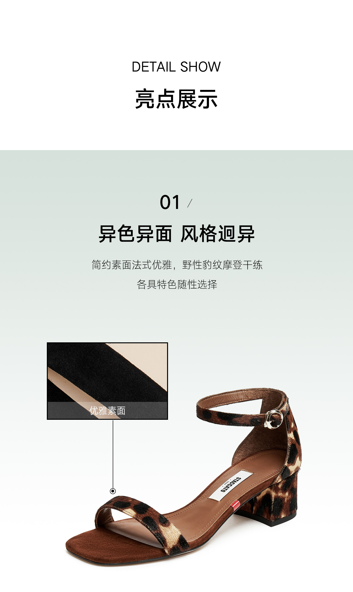 | 制鞋工艺:胶贴皮鞋 | 款式季节:夏季 | 鞋垫材质:牛皮革 | 渠道划分:线下同步 | 前掌高度:1CM |
