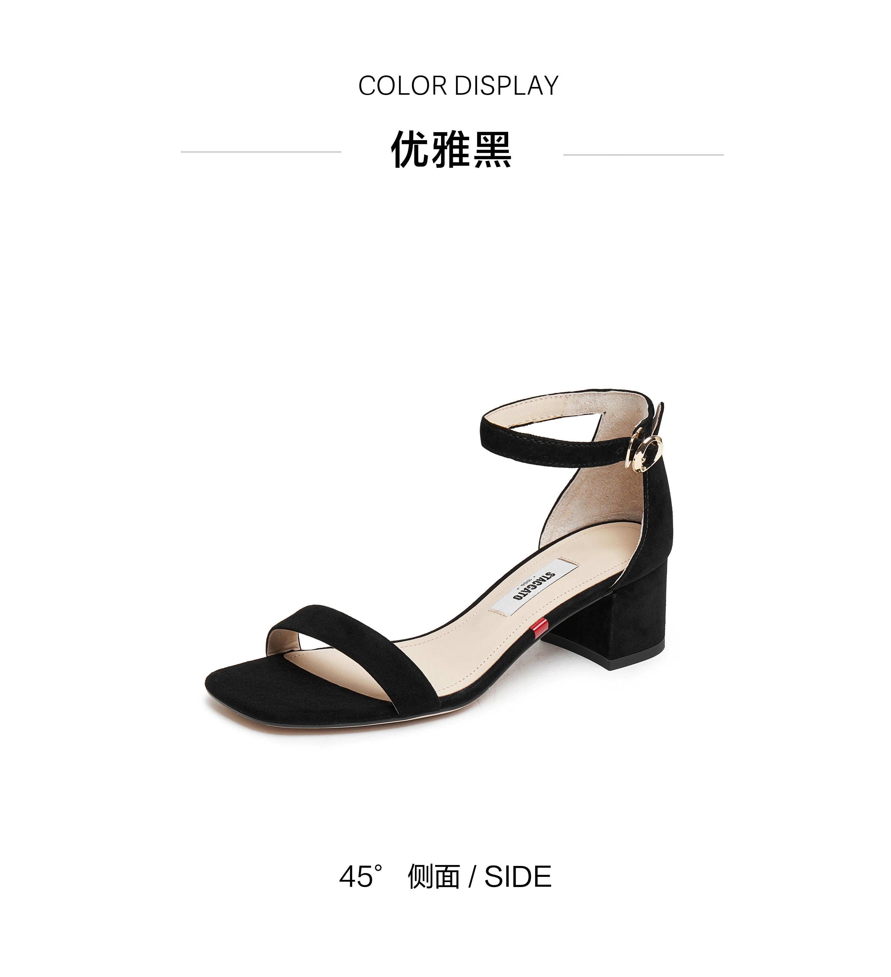 | 执行标准:皮凉鞋GB/T22756-2017 | 跟高范围:中跟鞋(3-5CM) | 鞋面图案:纯色 | 鞋跟形状:粗跟 | 厂家地址:广东省深圳市 |