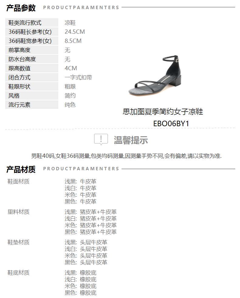 | 皮质特征:牛皮革 | 前掌高度:无 | 防水台高度:无 | 鞋类流行款式:凉鞋 |