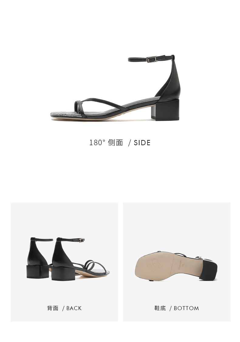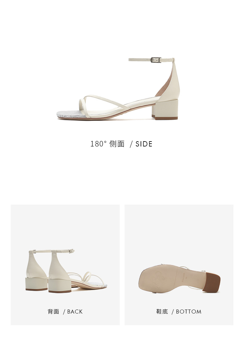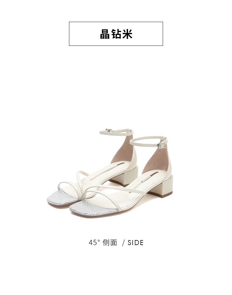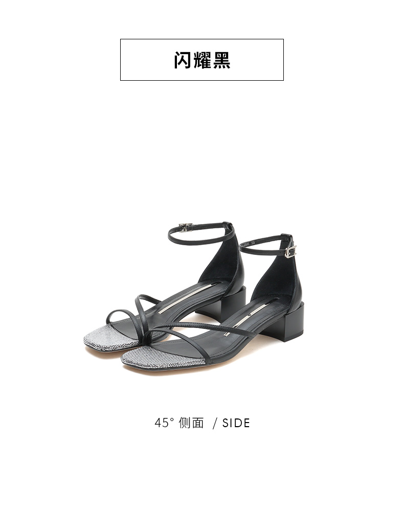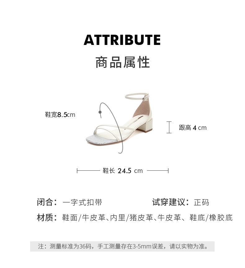 | 鞋头款式:露趾 | 鞋底材质:橡胶底 | 鞋面图案:纯色 | 鞋跟形状:粗跟 | 鞋面材质:牛皮革 |