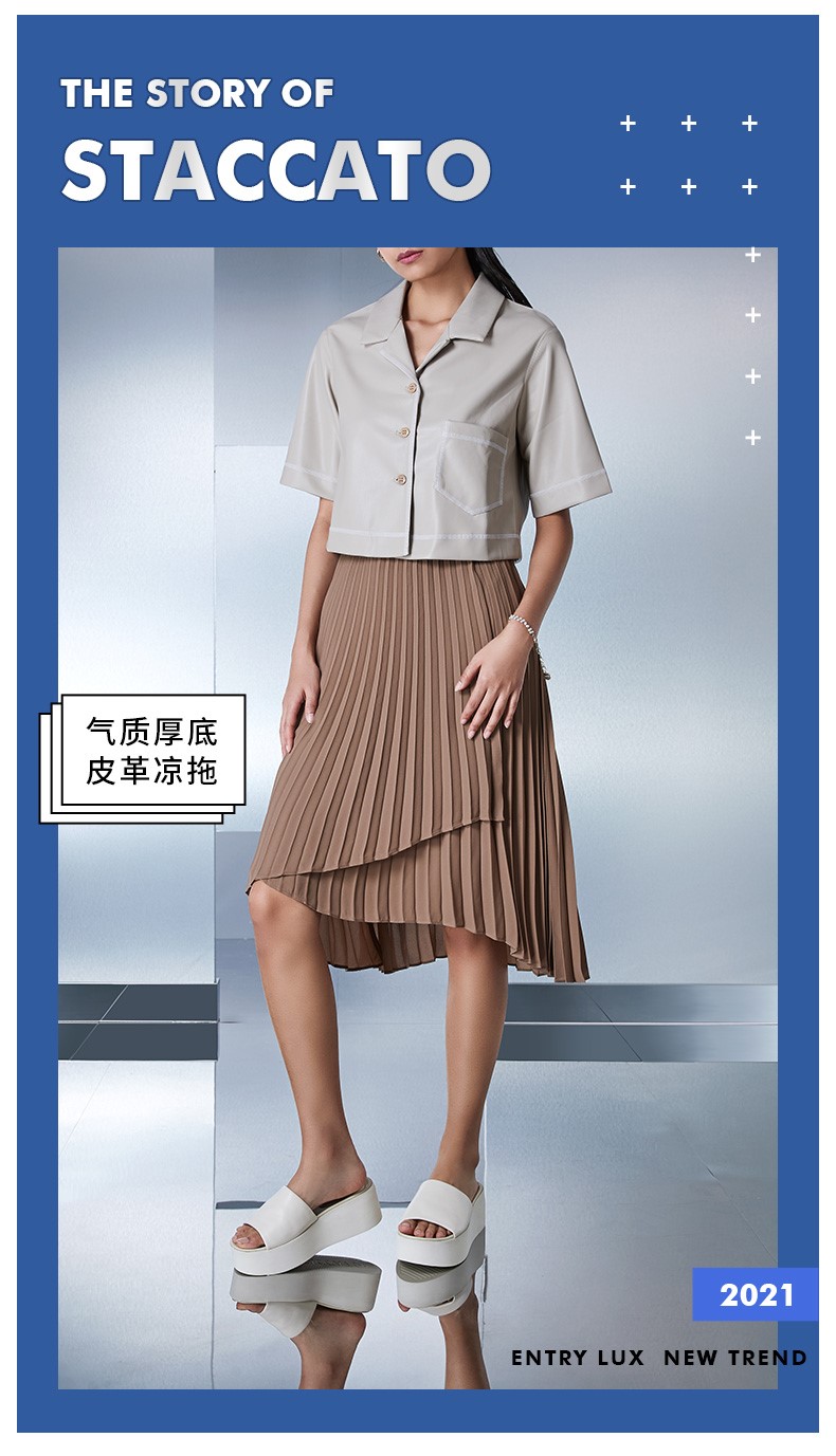 思加图(STACCATO),一个代表着年轻时尚、多元化的时装鞋履品牌,目标将时尚潮流带到女性的现实生活中。“STACCATO”是乐章上的音符,轻轻一点,谱出优美的旋律,为音乐带来多样性。穿上STACCATO单鞋的时代女性,踏出自信又轻松的脚步,犹如跳跃的音符,反映年轻与时尚的生活态度。目前品牌开设门店已超1100家,遍布中国、韩国、澳洲、新加坡、马来西亚、罗马尼亚、沙特阿拉伯等地。
