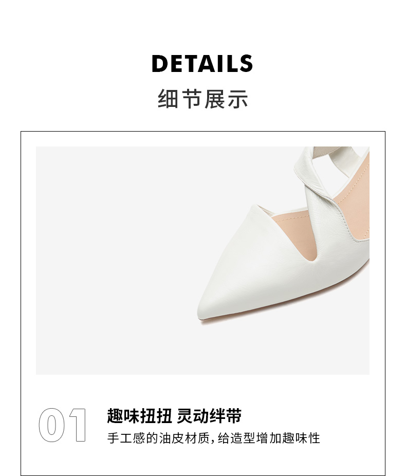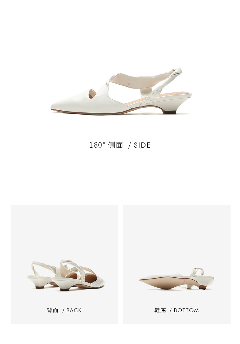 | 鞋头款式:尖头 | 鞋底材质:橡胶底 | 鞋面图案:纯色 | 鞋跟形状:异形跟 | 鞋面材质:牛皮革 |
