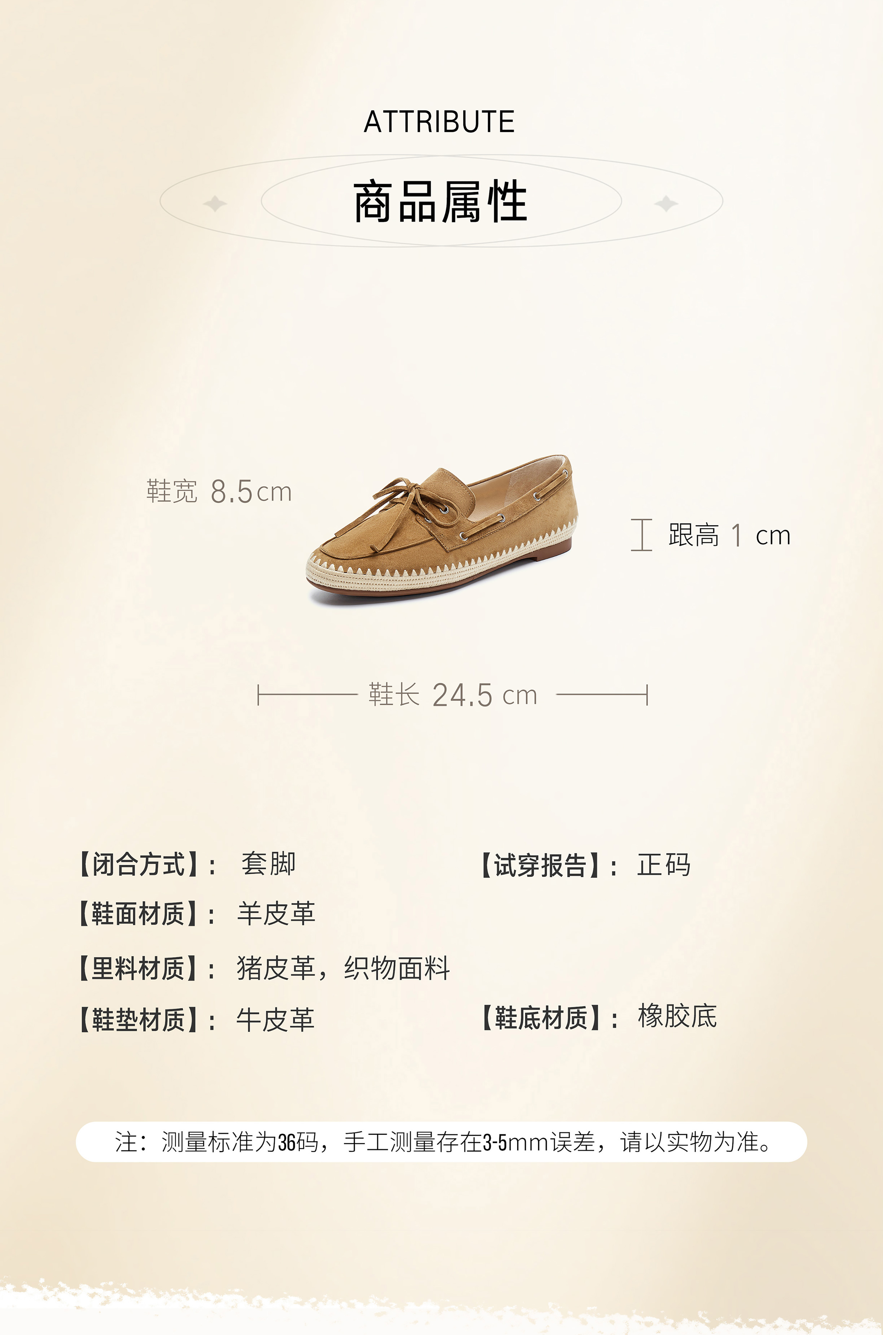 | 款式季节:春季 | 鞋垫材质:牛皮革 | 渠道划分:线下同步 | 前掌高度:无 | 销售季:2025年春季 |