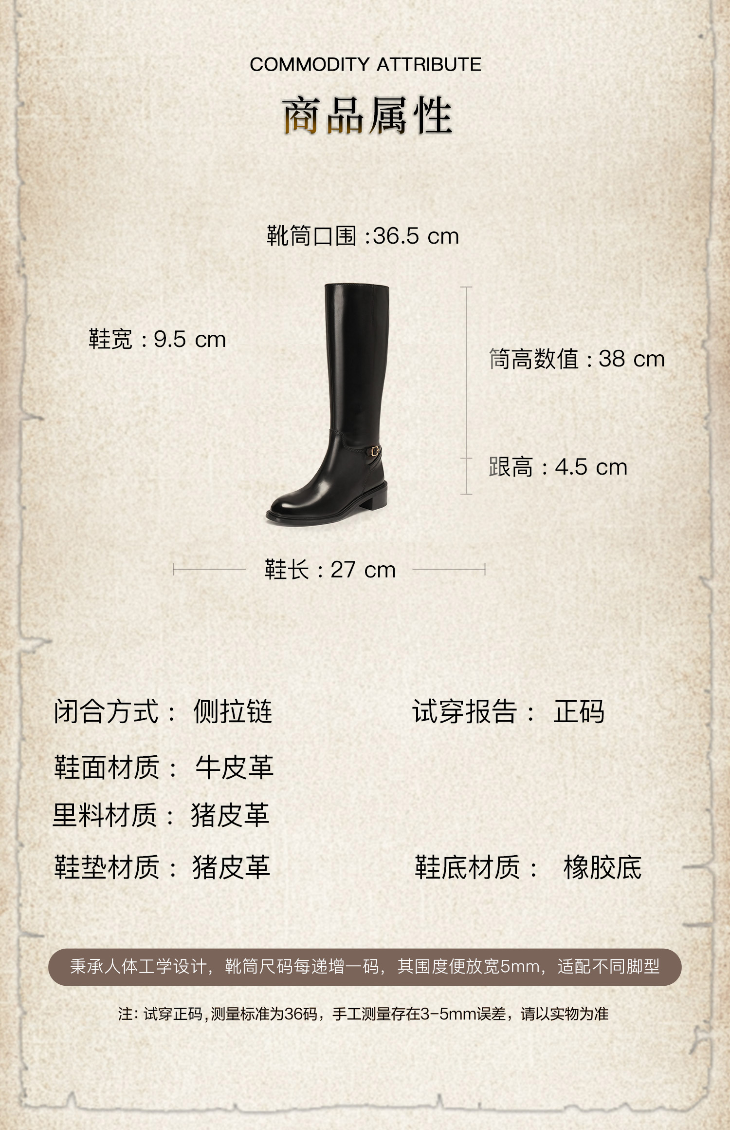 | 配跟:无 | 靴筒口围:36.5CM | 上市时间:2025年冬季 | 鞋类流行款式:骑士靴 | 鞋头款式:圆头 |