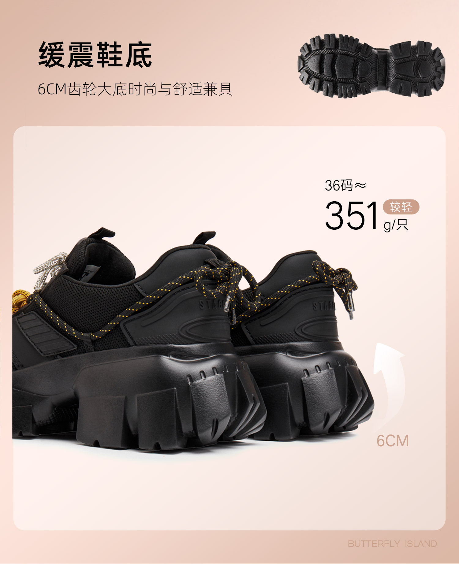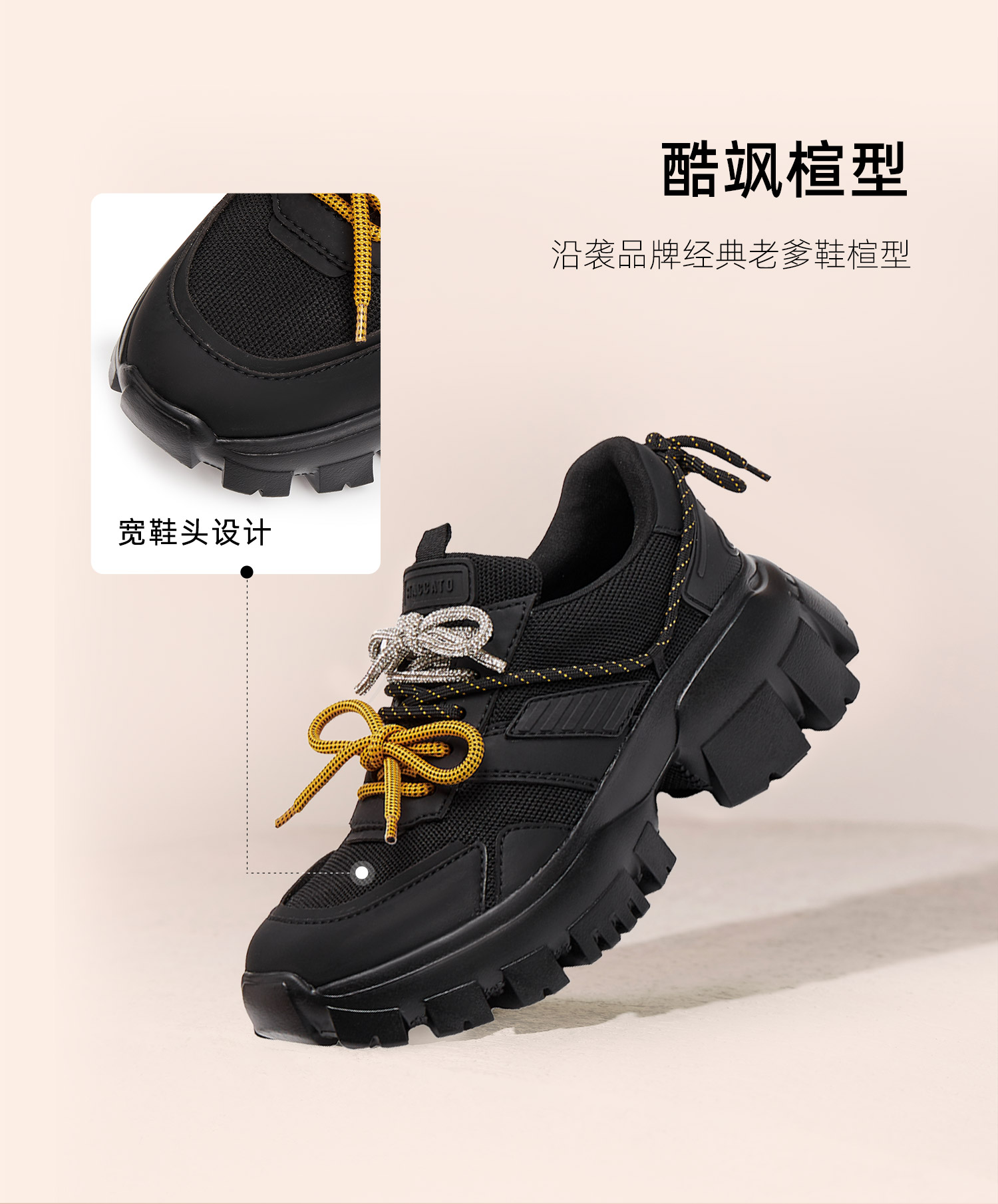 | 鞋垫材质:织物 | 皮质特征:织物 | 鞋类流行款式:老爹鞋 |