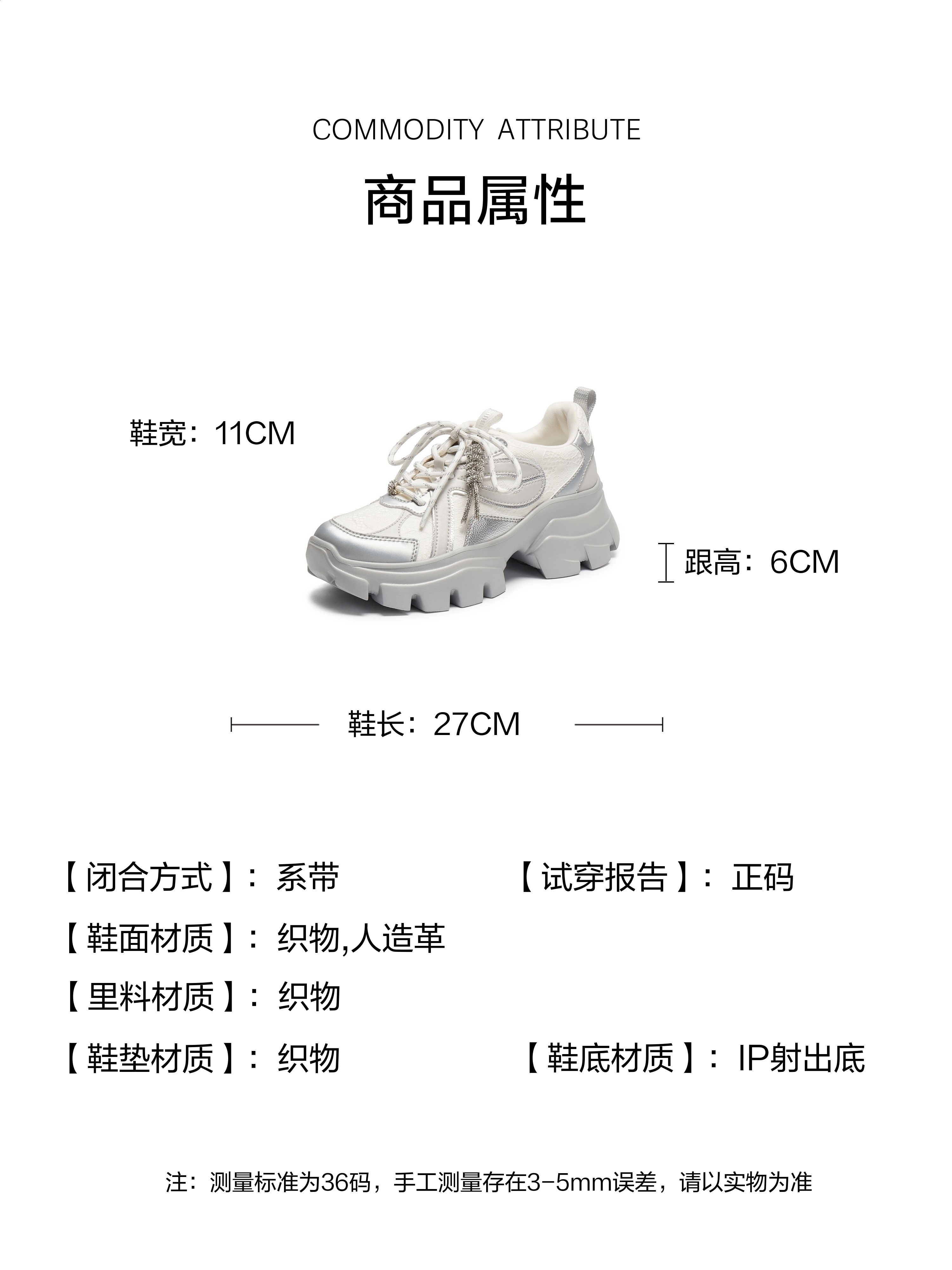 | 鞋垫材质:织物 | 前掌高度:2CM | 皮质特征:织物/人造革 | 鞋类流行款式:老爹鞋 |
